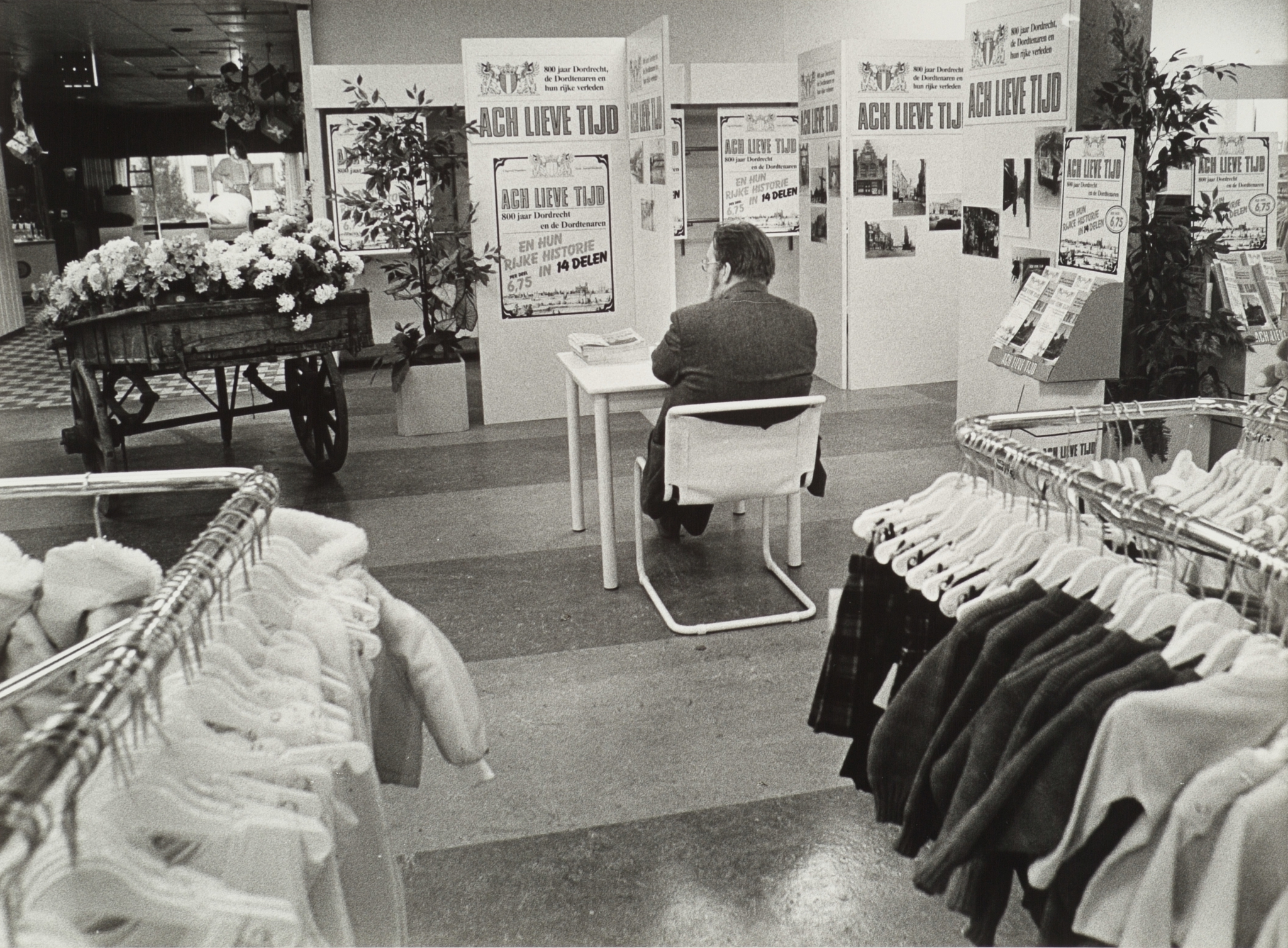 - Gemeentearchivaris Jensma bij de stand van het tijdschrift 'Ach lieve tijd' in het warenhuis V&D