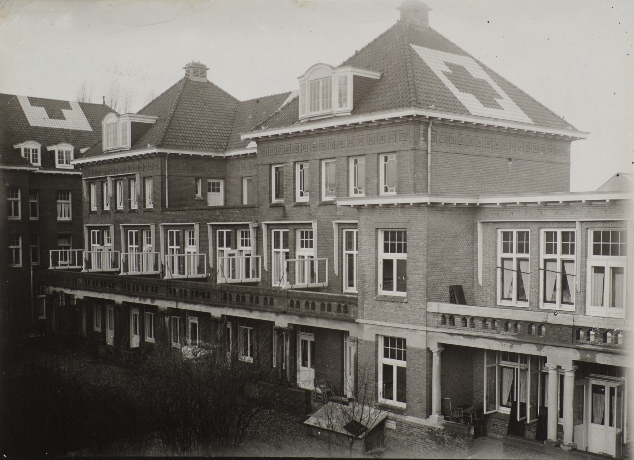 - Patiëntengebouw van de Vereniging tot Ziekenverpleging; de rode kruizen zijn in oorlogstijd aangebracht.