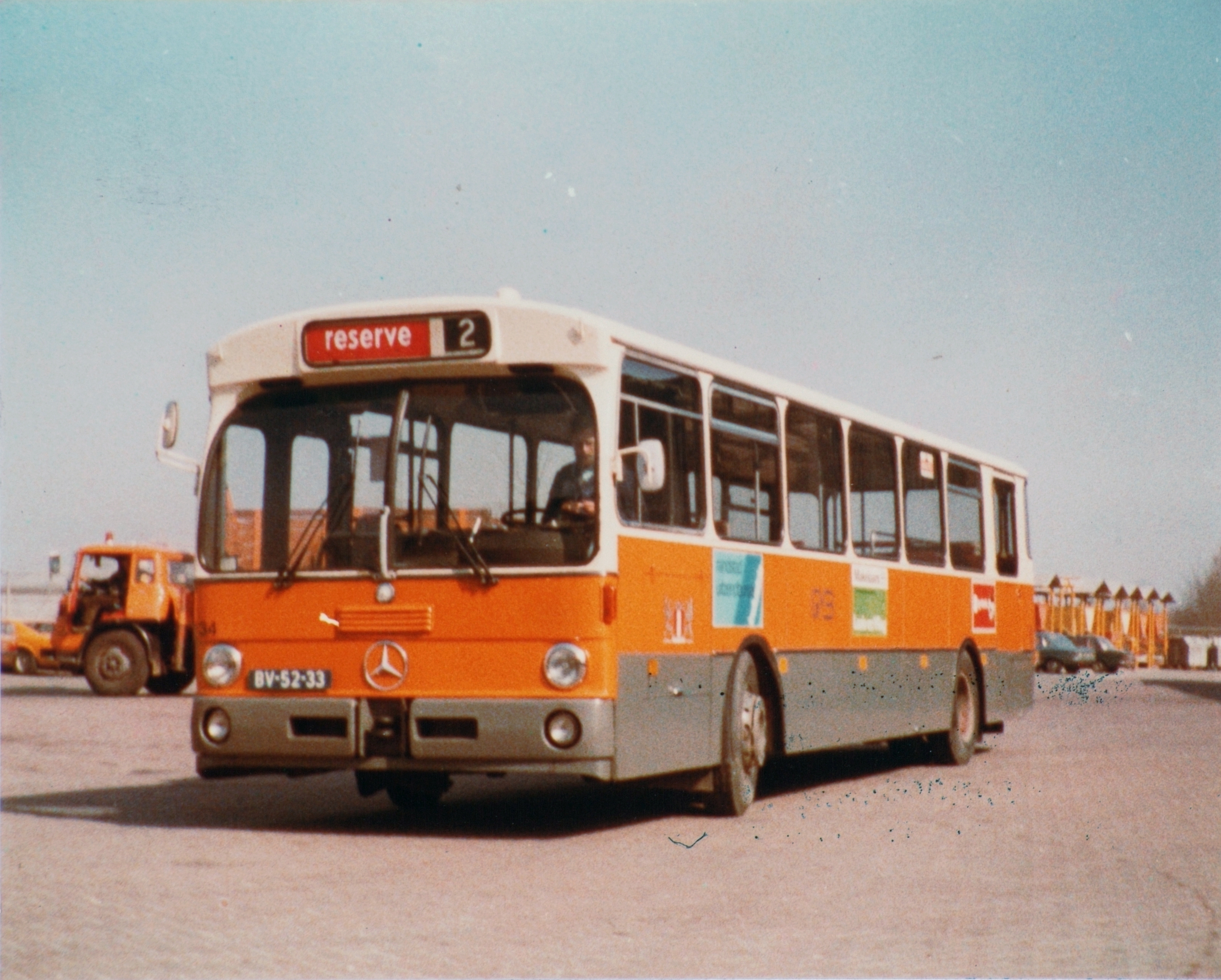 Door het GVB werden in 1971 de bussen 32 t/m 35 aangeschaft. Deze Mercedes-Benz O 305 bussen kwamen compleet met opbouw uit de Mercedes-Benz busfabriek in Mannheim. Door het personeel van het GVB werden deze vier bussen dan ook “De Mannheimers” genoemd. Bus 34, kenteken BV-52-33, heeft dienst gedaan van 1971-1984. Hij staat hier op het terrein van het GVB aan de Baanhoekweg 38.