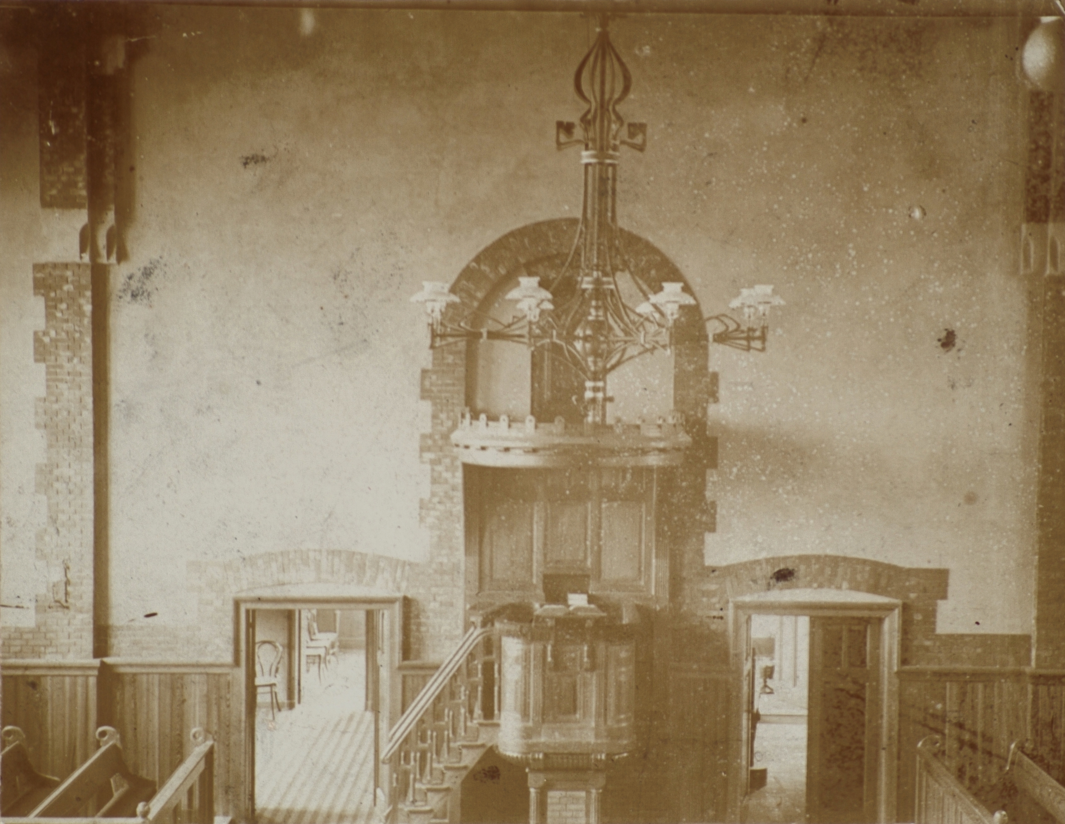 Interieur van de Remonstrantse kerk in de Cornelis de Wittstraat.