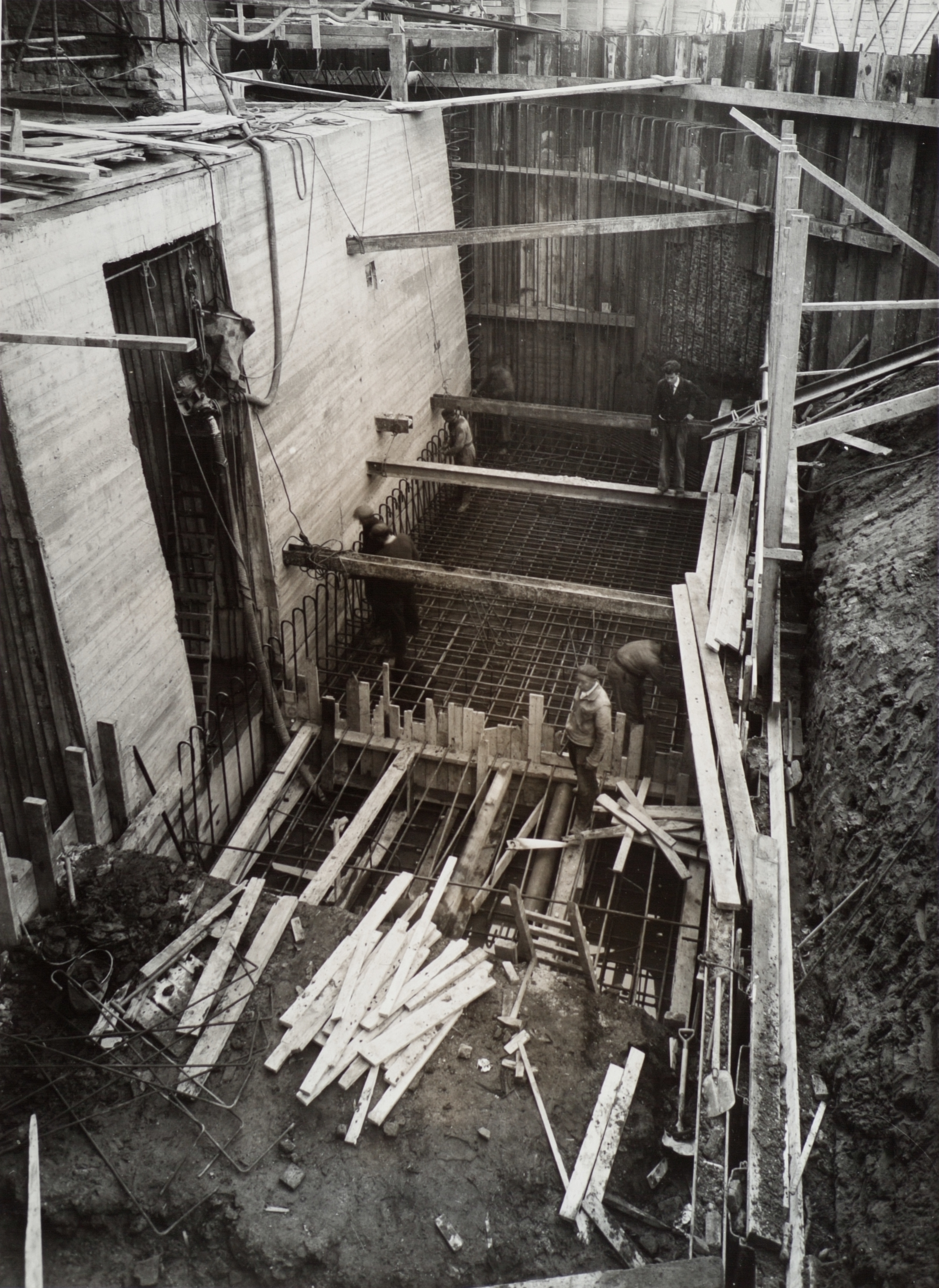 Herstel van de fundering aan de westzijde van de toren van de Grote kerk.