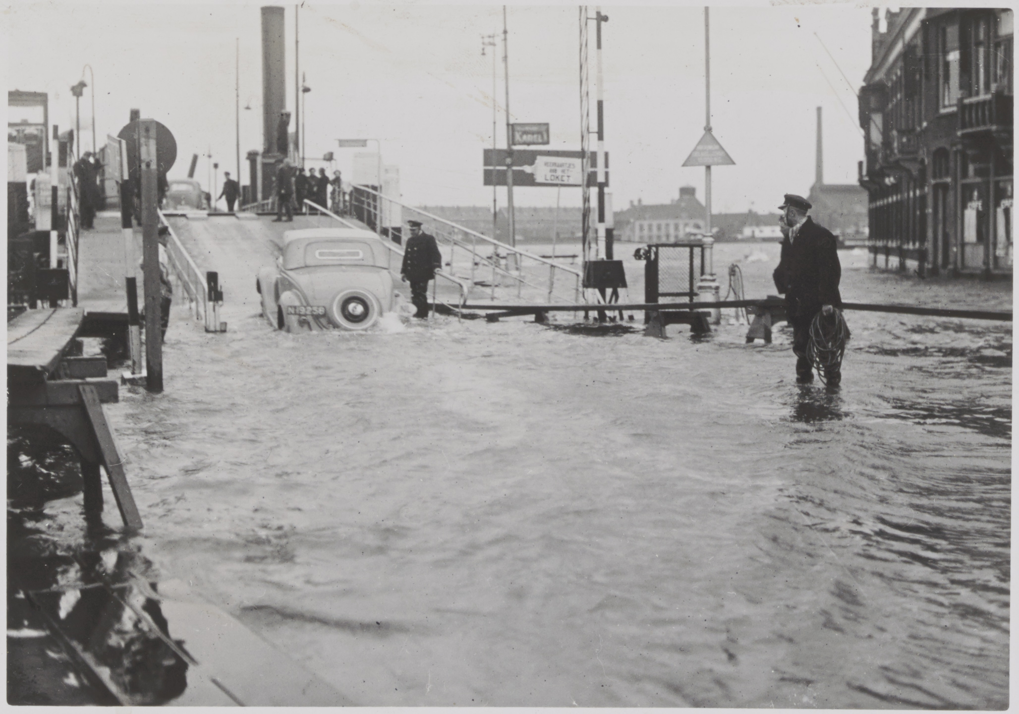 - Hoogwater op het Blauwpoortsplein en het Zwijndrechts veer.