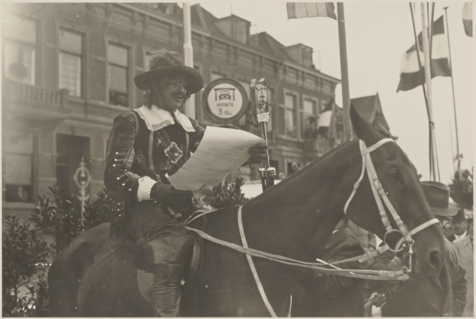 - Een heraut op de Spuiweg tijdens de opening van de Krispijntunnel.
