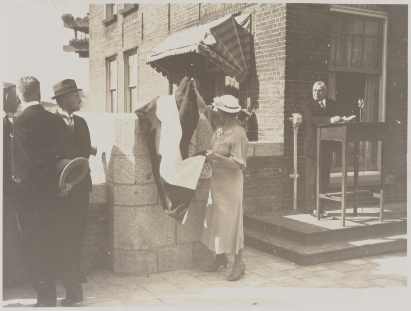 Het was wethouder mevr. J. Smit-Pieters die op verzoek van wethouder I. van Huiden een doek wegtrok en daarmee de Leuvebrug op 04-09-1937 voor geopend verklaarde.