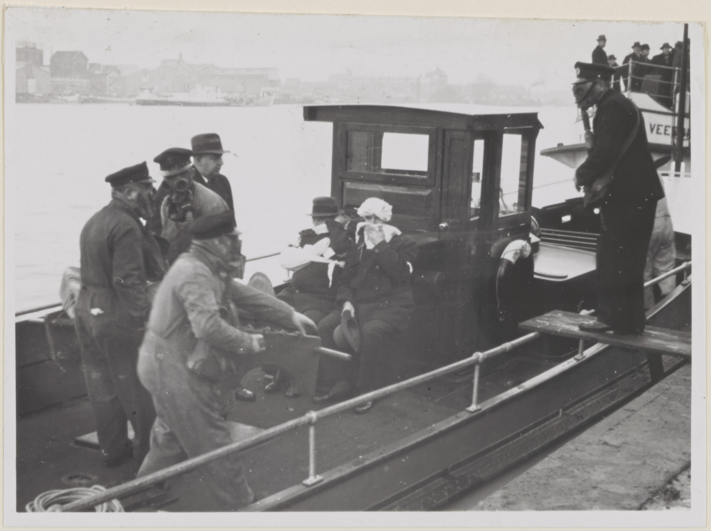 Oefening van de luchtbescherming op de Buiten Kalkhaven.