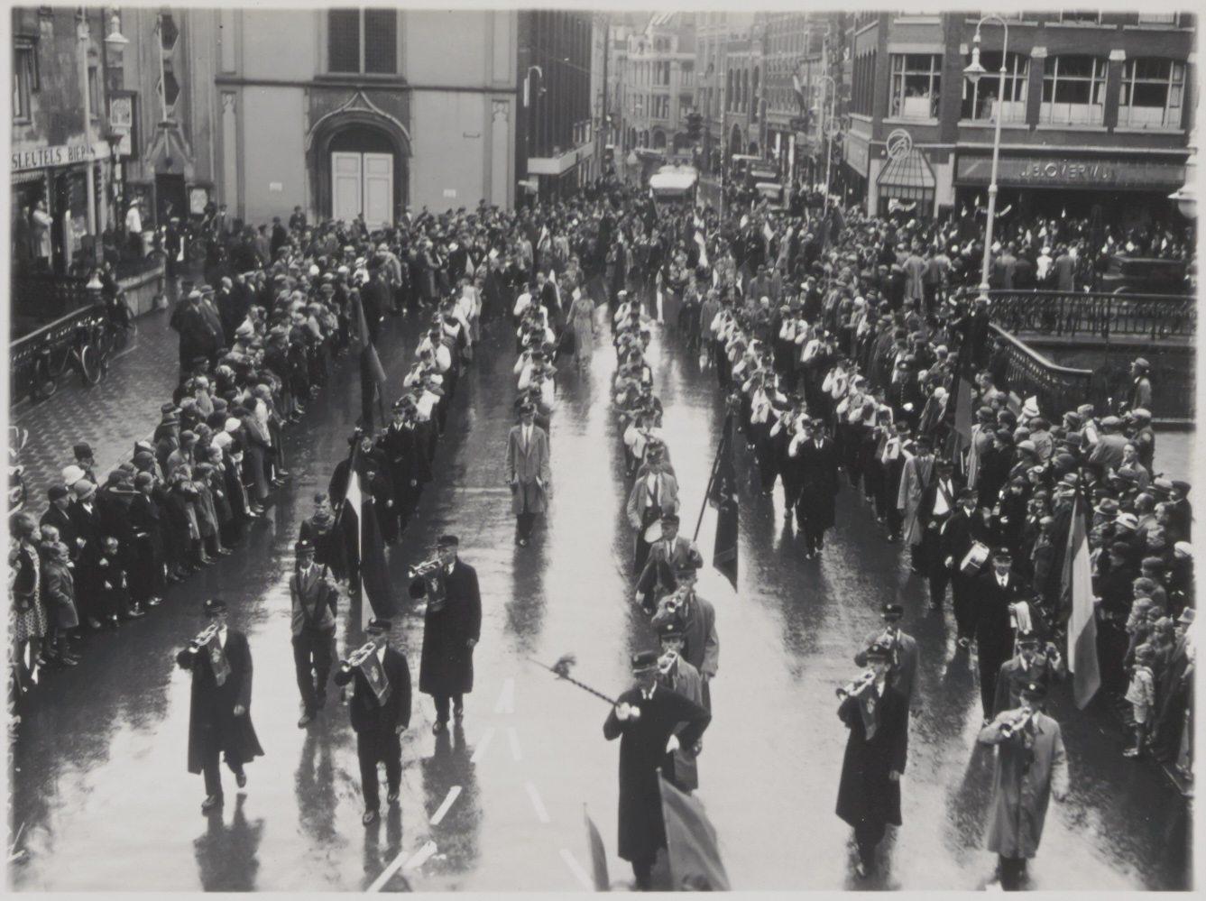- bruggen kerken kledingzaken / modezaken muziekkorpsen optochten publiek / toeschouwers