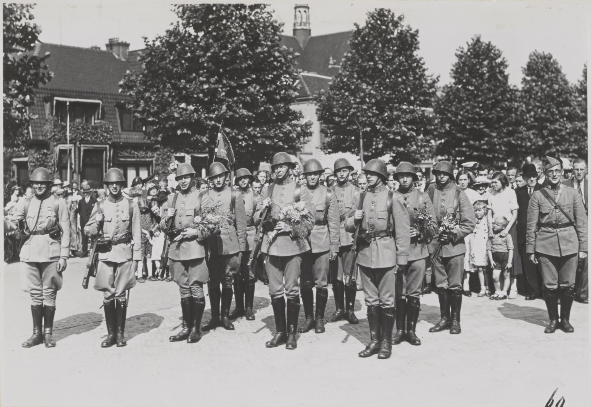 - Nederlandse militairen op de Burgemeester de Raadtsingel na het beëindigen van de Nijmeegse Vierdaagse.