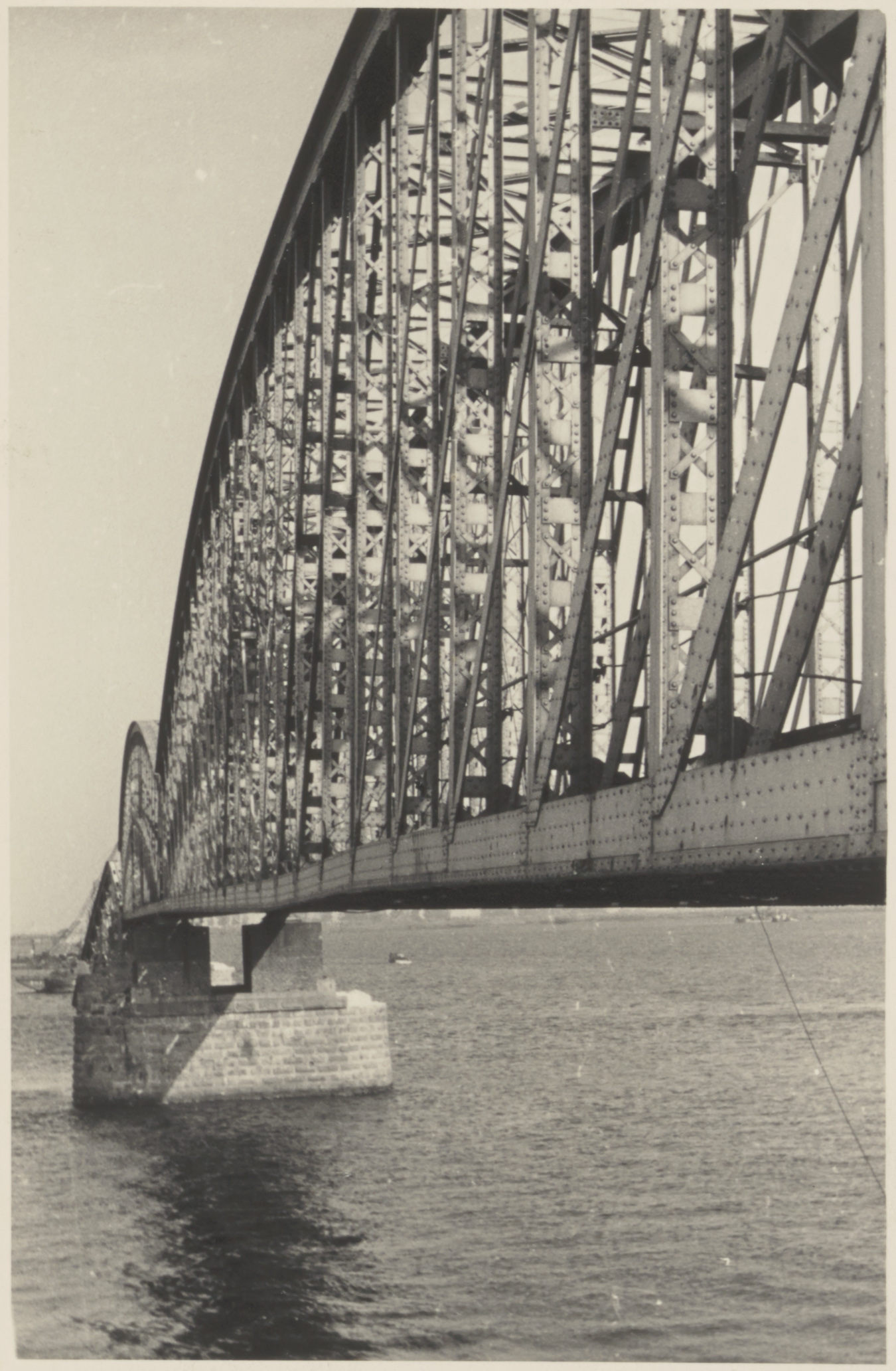 De in de Tweede Wereldoorlog beschadigde spoorbrug over het Hollandsch Diep.