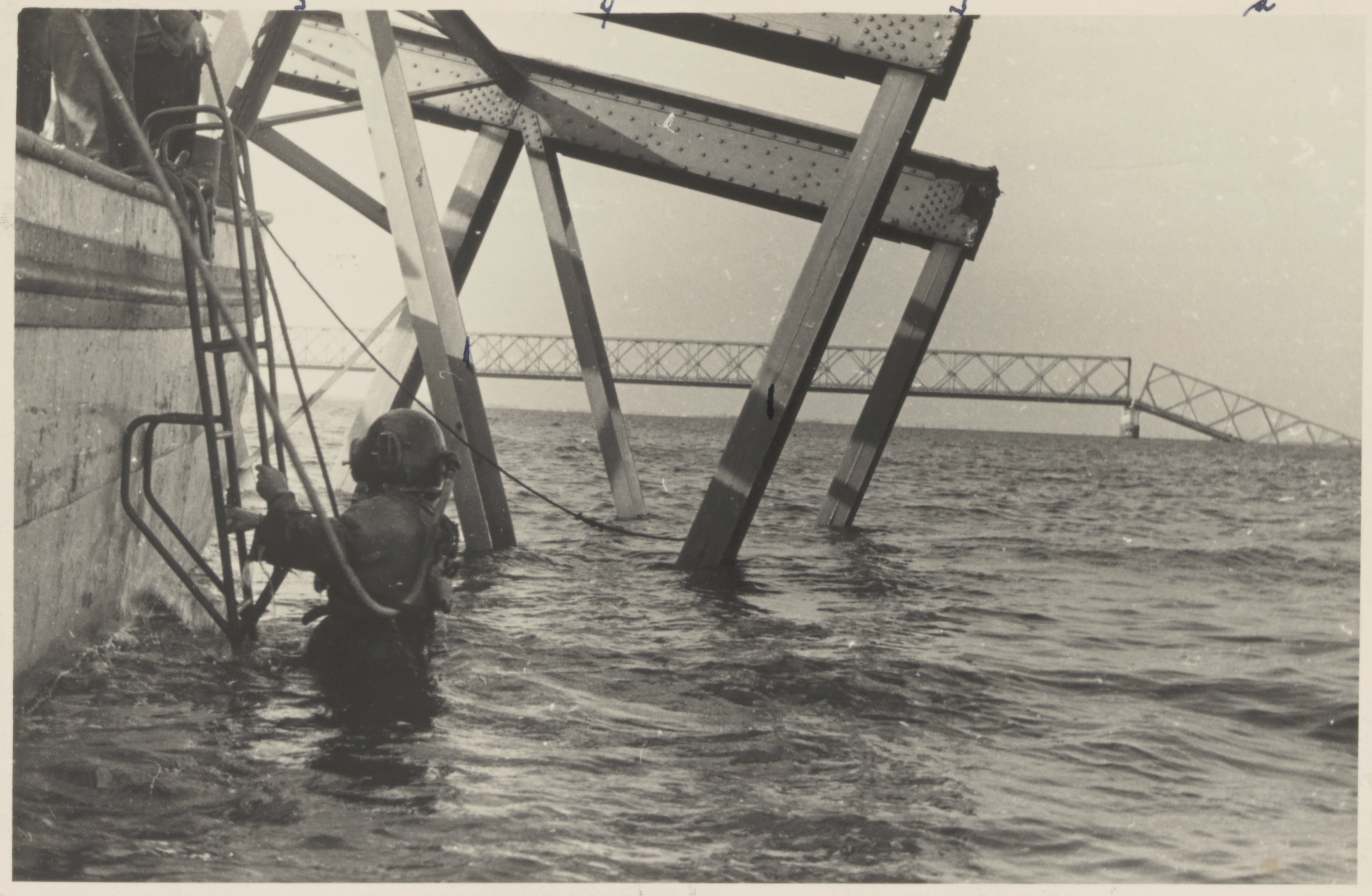 - De in de Tweede Wereldoorlog vernielde verkeersbrug over het Hollandsch Diep.
