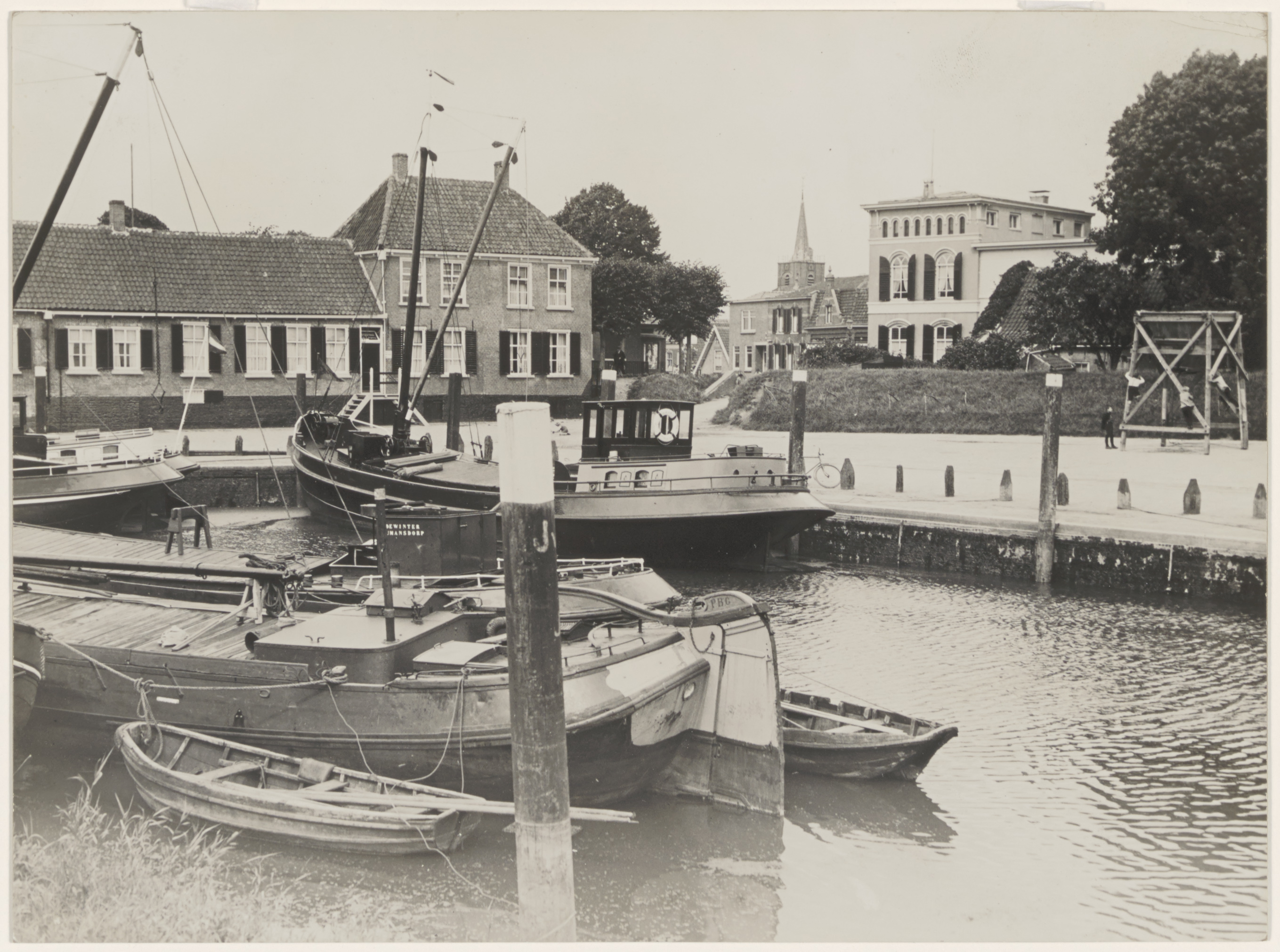 Dorpshaven van Numansdorp met de Molendijk op de achtergrond en rechts achter de Hervormde Kerk