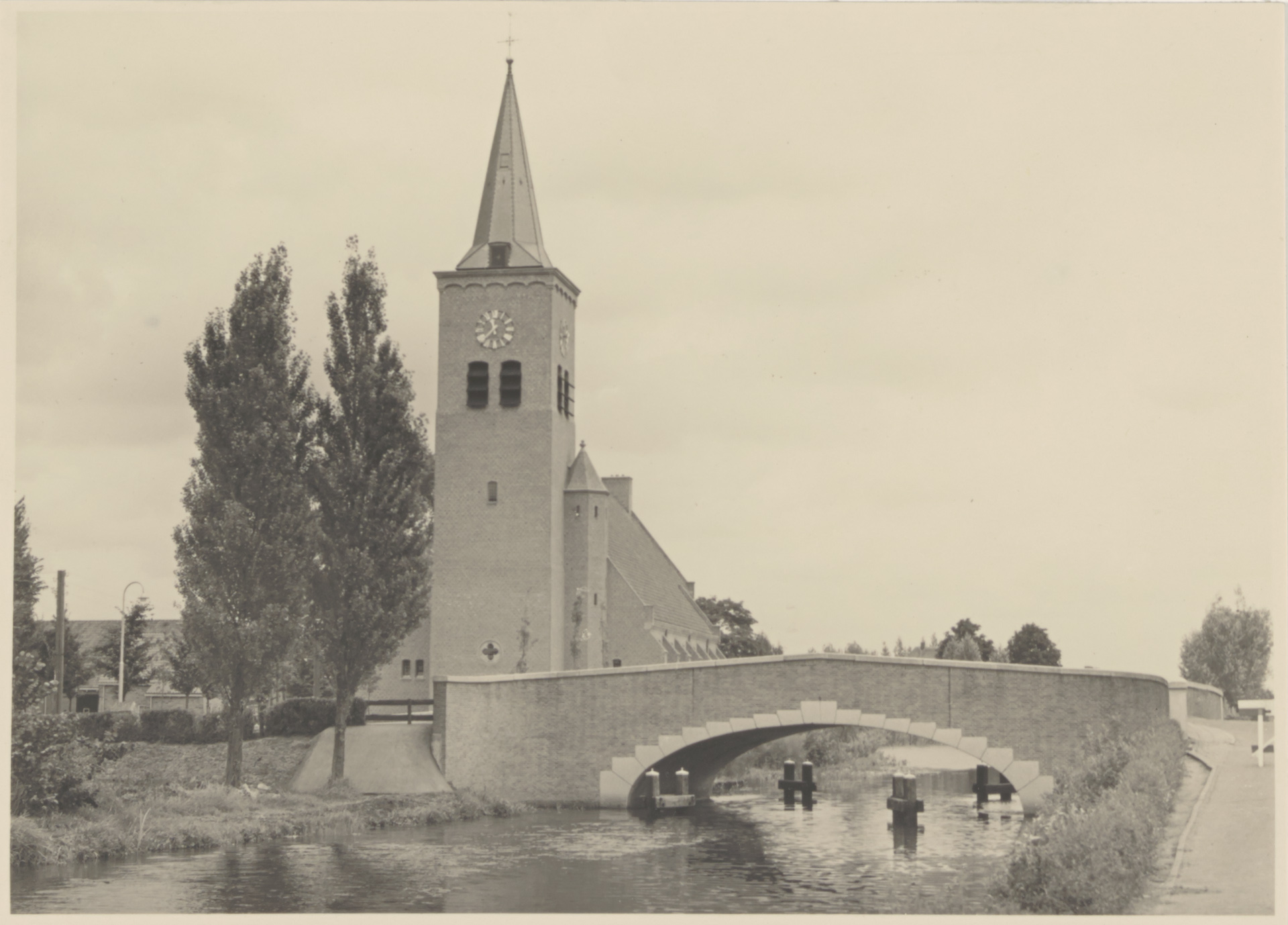 - Hervormde Kerk in de Kerkstraat te Bleskensgraaf, gezien vanaf de Dorpsstraat. De brug gaat over de Graafstroom.