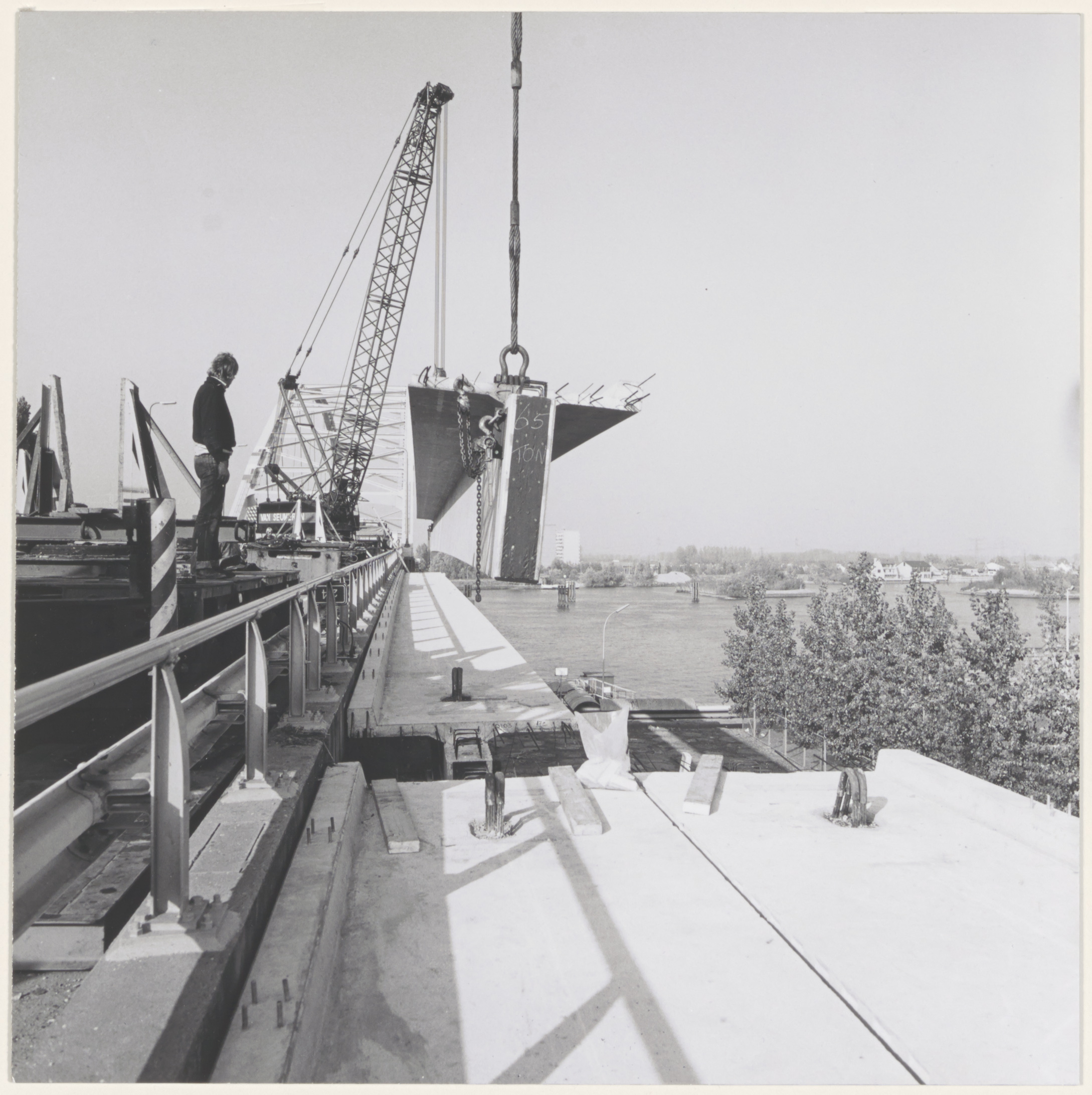 - arbeiders / werklieden bruggenbouw fietspaden hijskranen verkeersbruggen