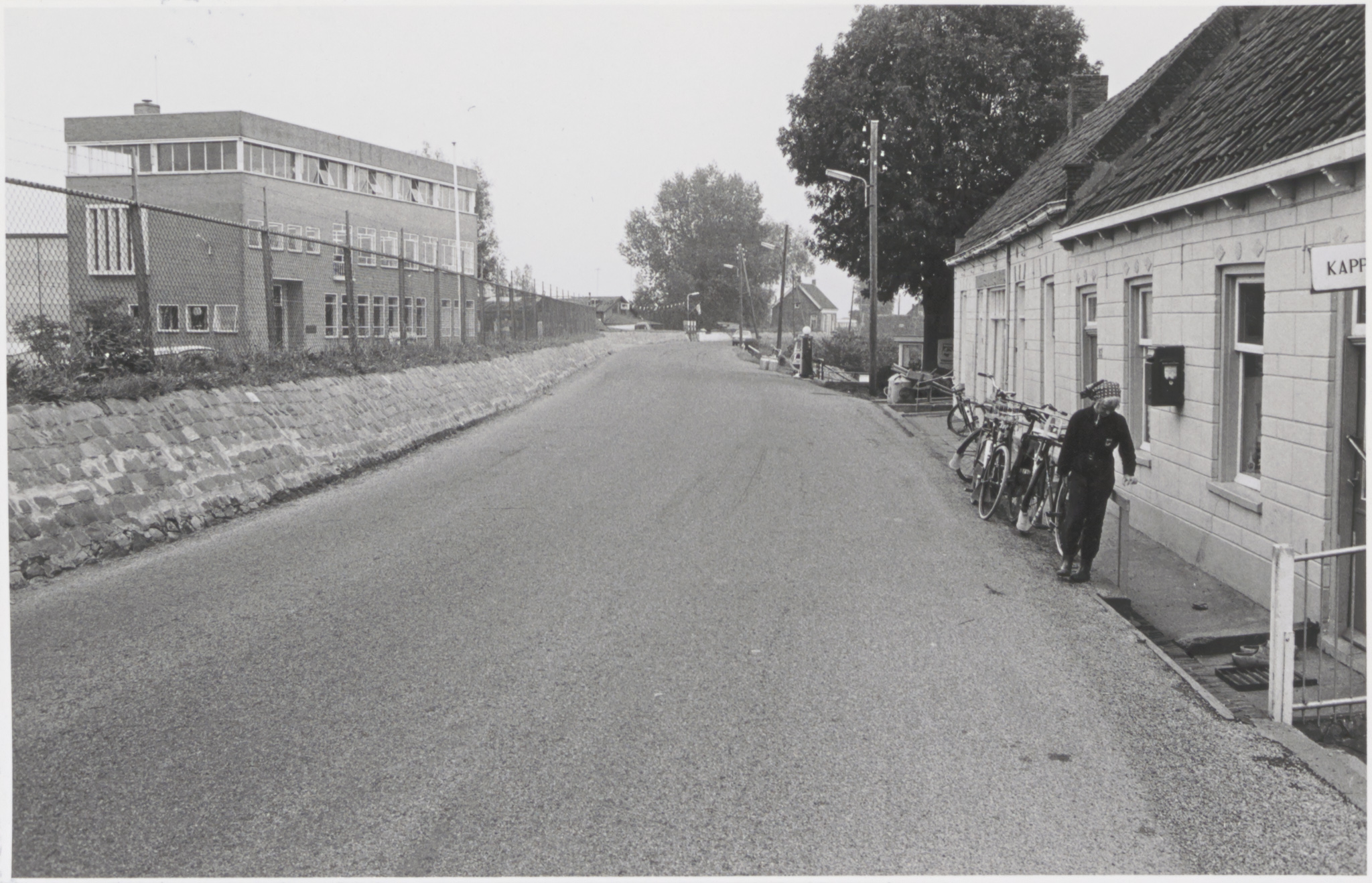 - De Lekdijk in Nieuw Lekkerland, gezien naar het oosten. Links het kantoor van Bailey en rechts kapper Stam.