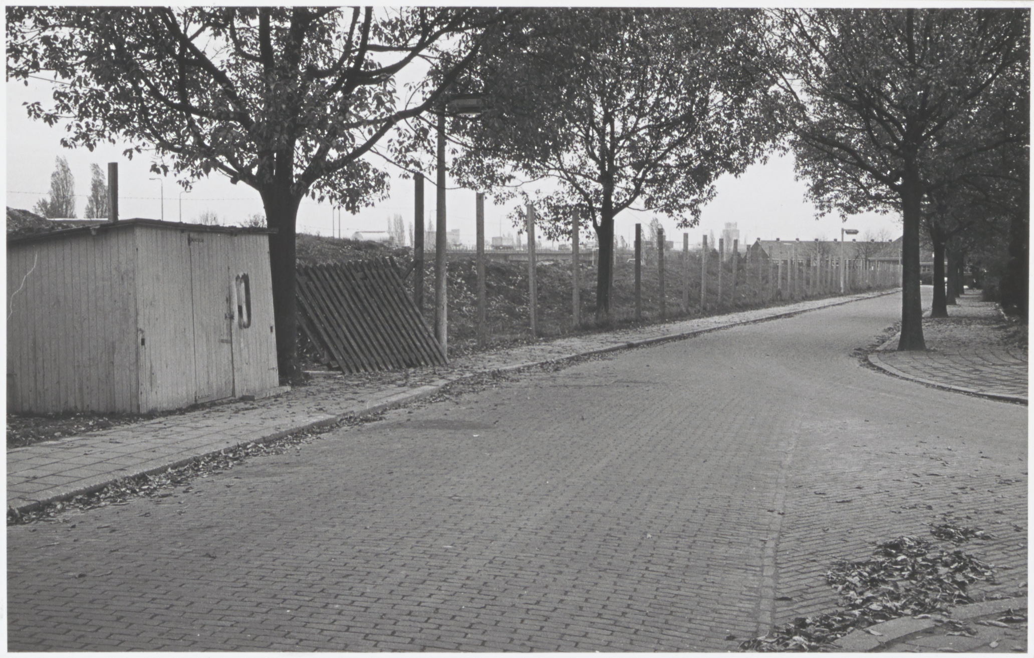 De Javalaan oostwaarts vanaf de Bankastraat (rechts) richting de Eben Haëzerschool in Zwijndrecht ten tijde van de aanleg Drechttunnel.
