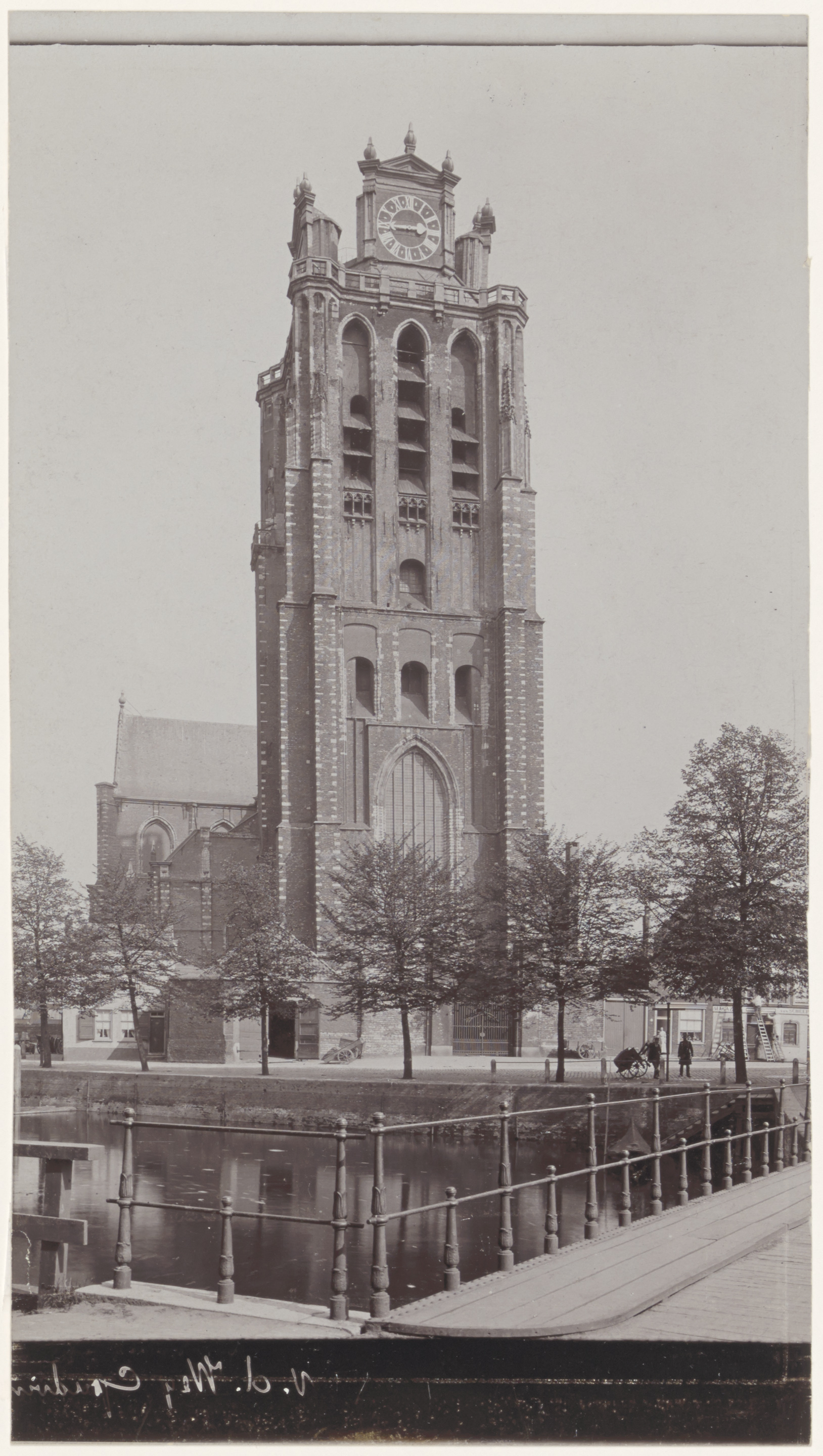 - De Grote Kerk vanaf de Mazelaarsbrug over het Maartensgat.
