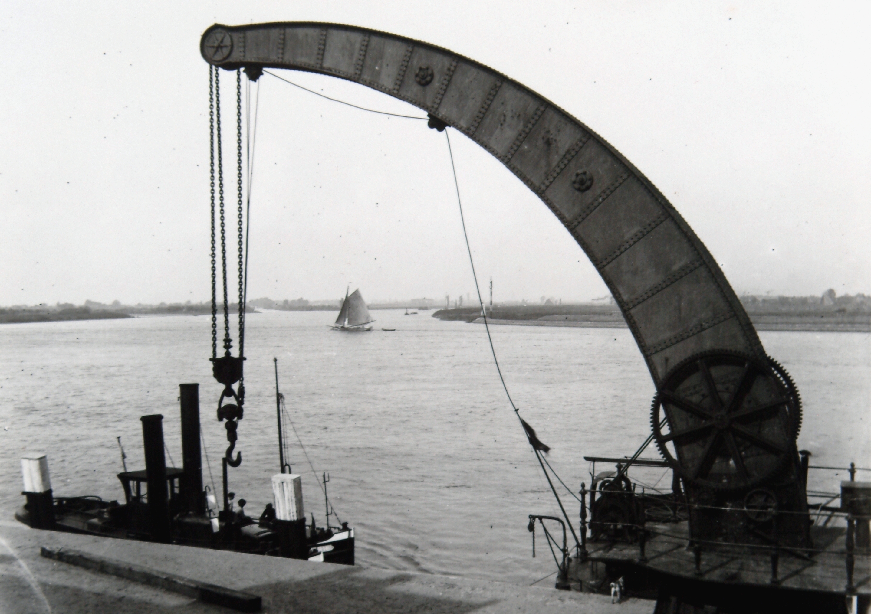 - dagbladen / kranten hijskranen riviergezichten sleepboten zeilvaartuigen