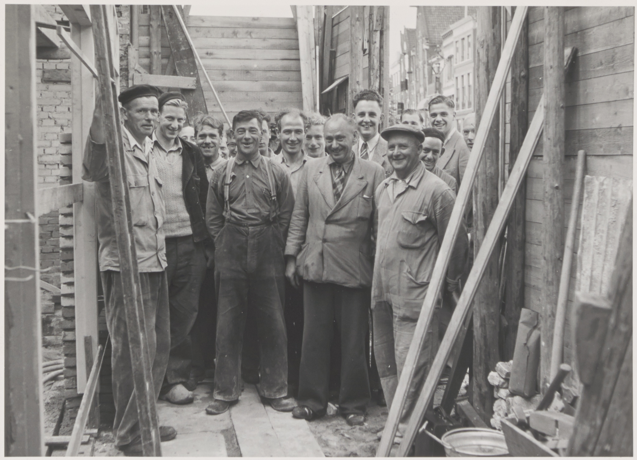 - Arbeiders bij de bouw van een nieuw pand aan de Kuipershaven.
