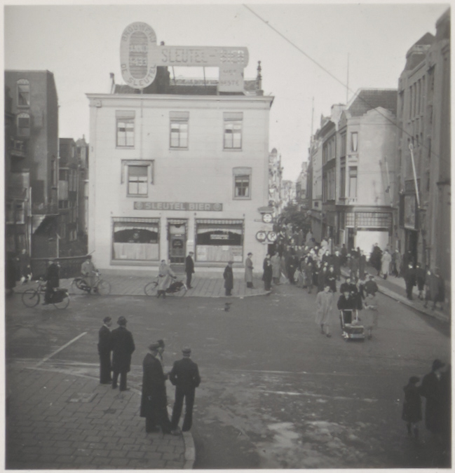 - Café Pols op de hoek Voorstraat - Visbrug (links). Rechts bioscoop Astoria.