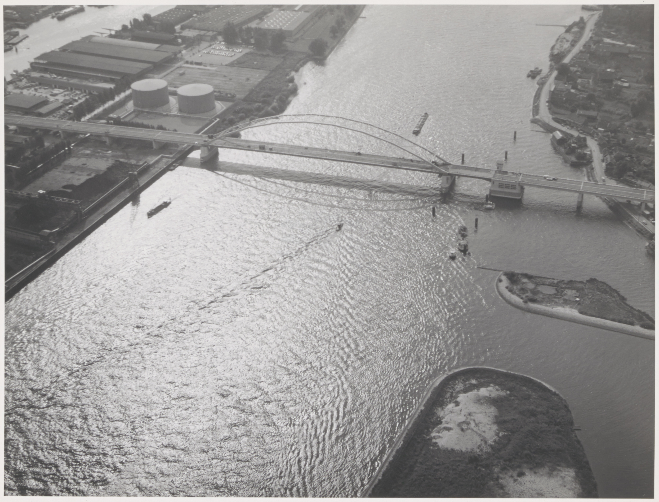 - Luchtfoto van de Rondweg met de Merwedebrug over de Merwede in westelijke richting. Rechts de havenmond van de Koolhaven en de Johannahaven in Papendrecht. Linksboven de Eerste Merwedehaven en de Kerkeplaat.