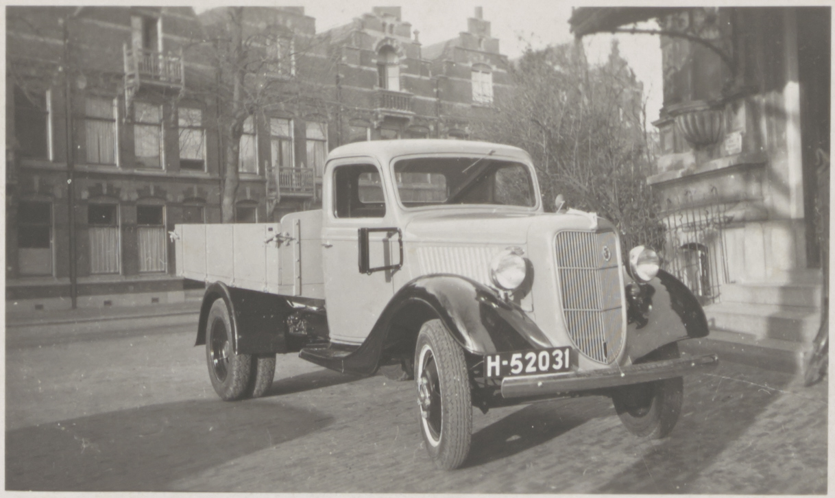 - Vrachtwagen voor villa Rozenhof met de Maatschappij Dordrechtstraat op de achtergrond.