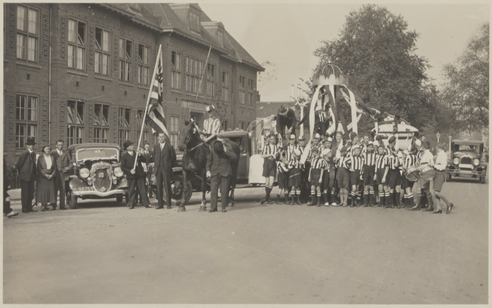 - Optocht van leden van voetbalvereniging DMC voor de MULO-school.op de Groenedijk.