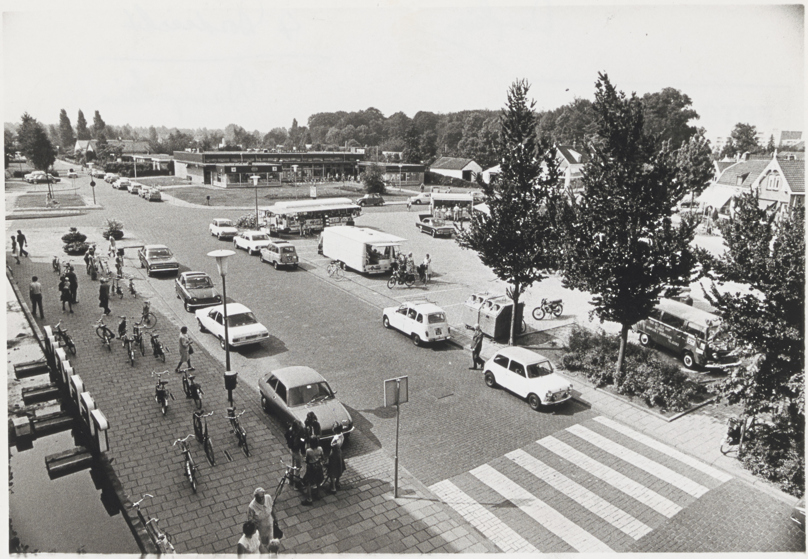 - Het Damplein in Dubbeldam, gezien naar het Zuiden. Links op de achtergrond de Elzenlaan.