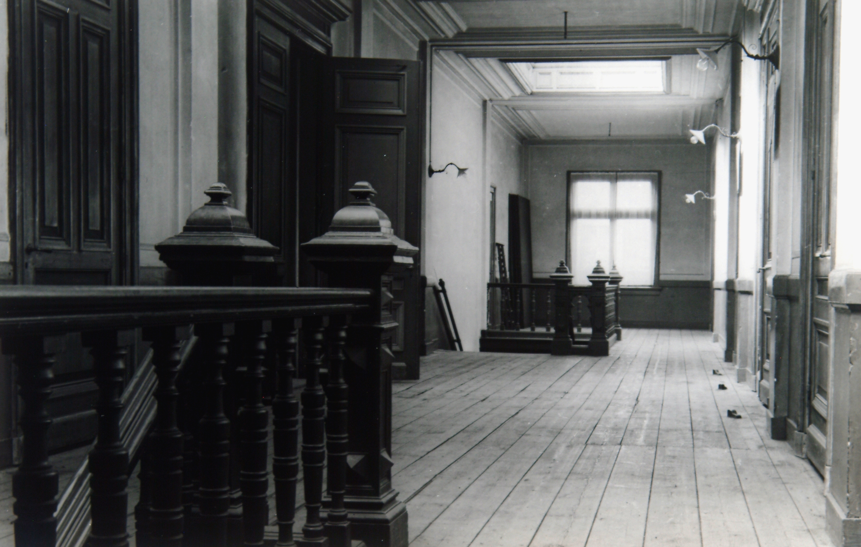 Gang in schouwburg Kunstmin tussen kleine zaal en frontbalkon naar padzijde.