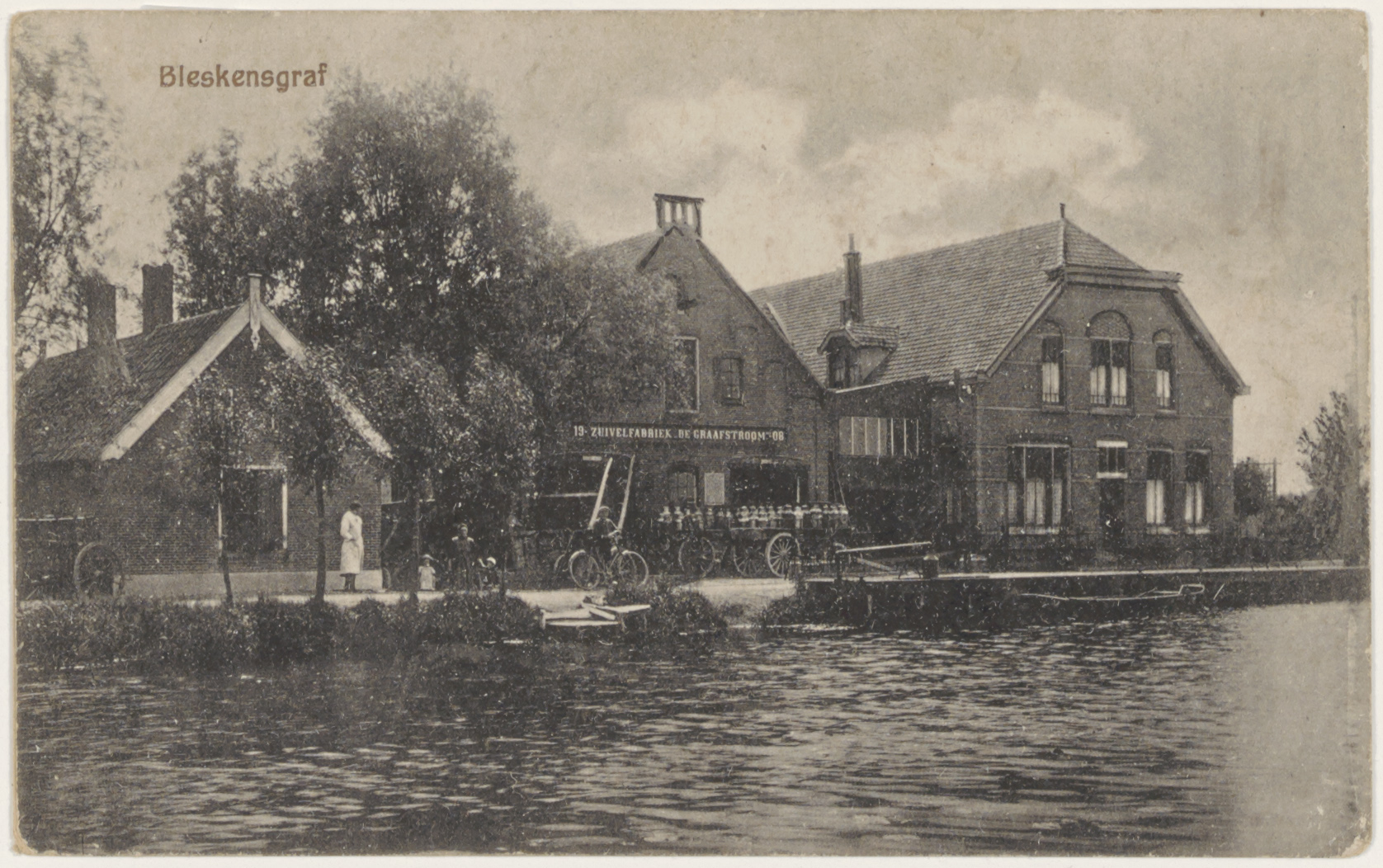 - Melkfabriek De Graafstroom aan de Dorpsstraat in Bleskensgraaf. Links het huis van wagenmaker Gart de Vaal.