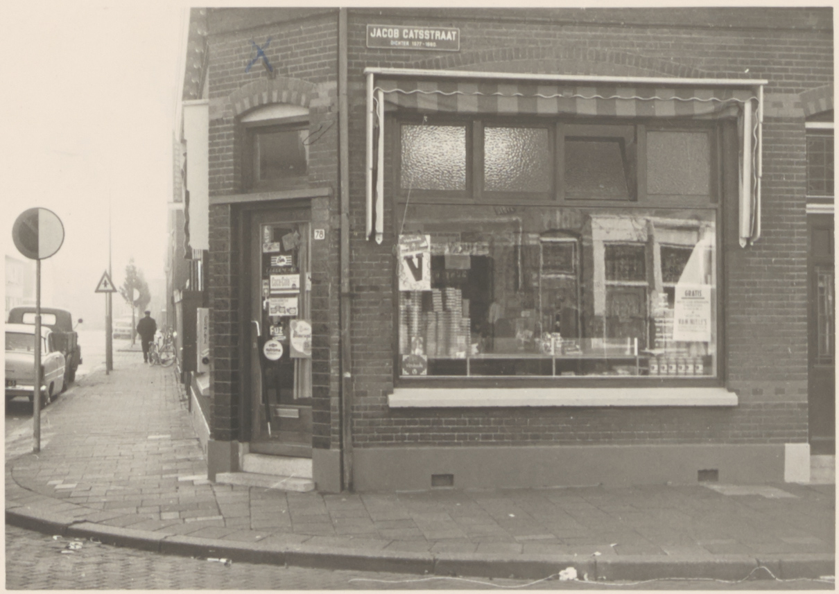 - Kruidenierswinkel in de Jacob Catsstraat, hoek Brederodestraat.