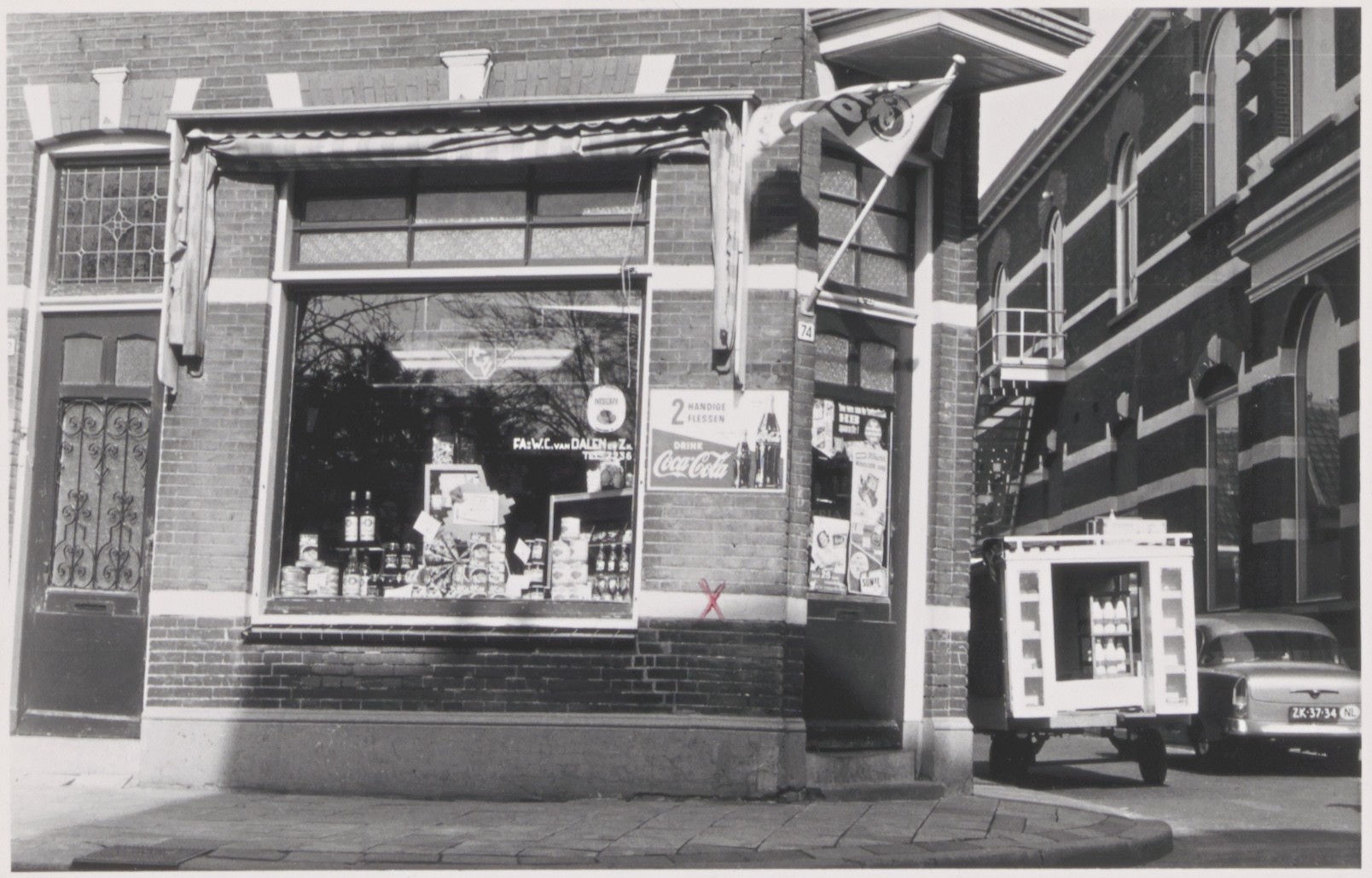 - Kruidenierswinkel van Van Dalen op de Sint Jorisweg 74. Rechts schouwburg Kunstmin in het Matena's Pad.