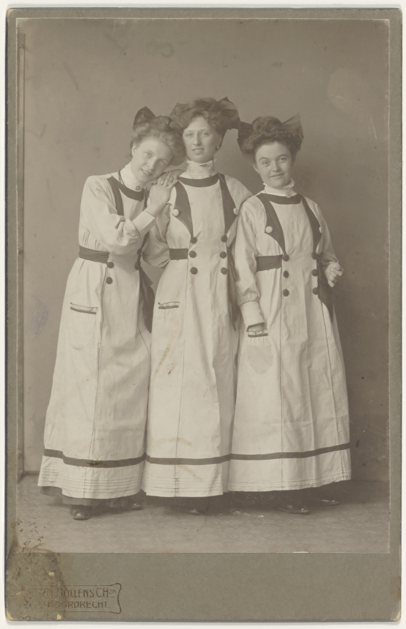 Personeel van de Victoria-fabriek in bedrijfskleing.