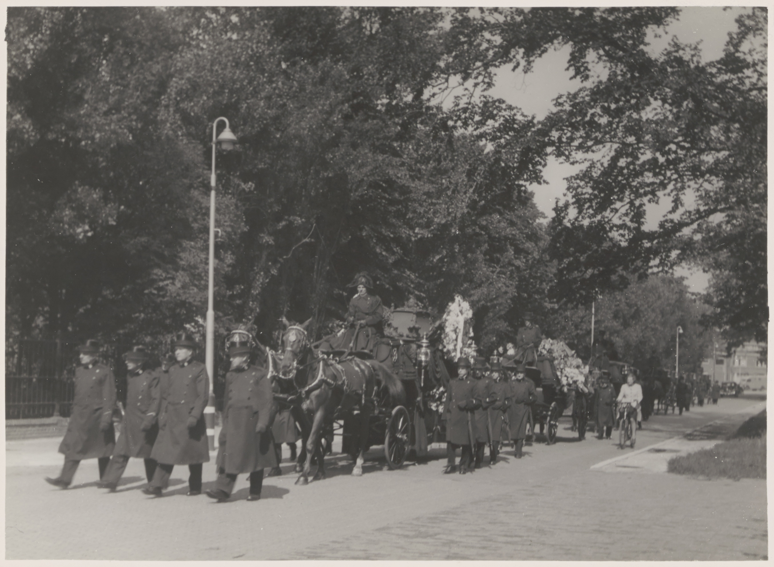- Begrafenis van Julien Charles Redelé op begraafplaats Oud Eik en Duinen in 's-Gravenhage. De heer Redelé was directeur van de Victoria-fabriek en overleed bij een verkeersongeluk in Naarden op 18 augustus 1941.