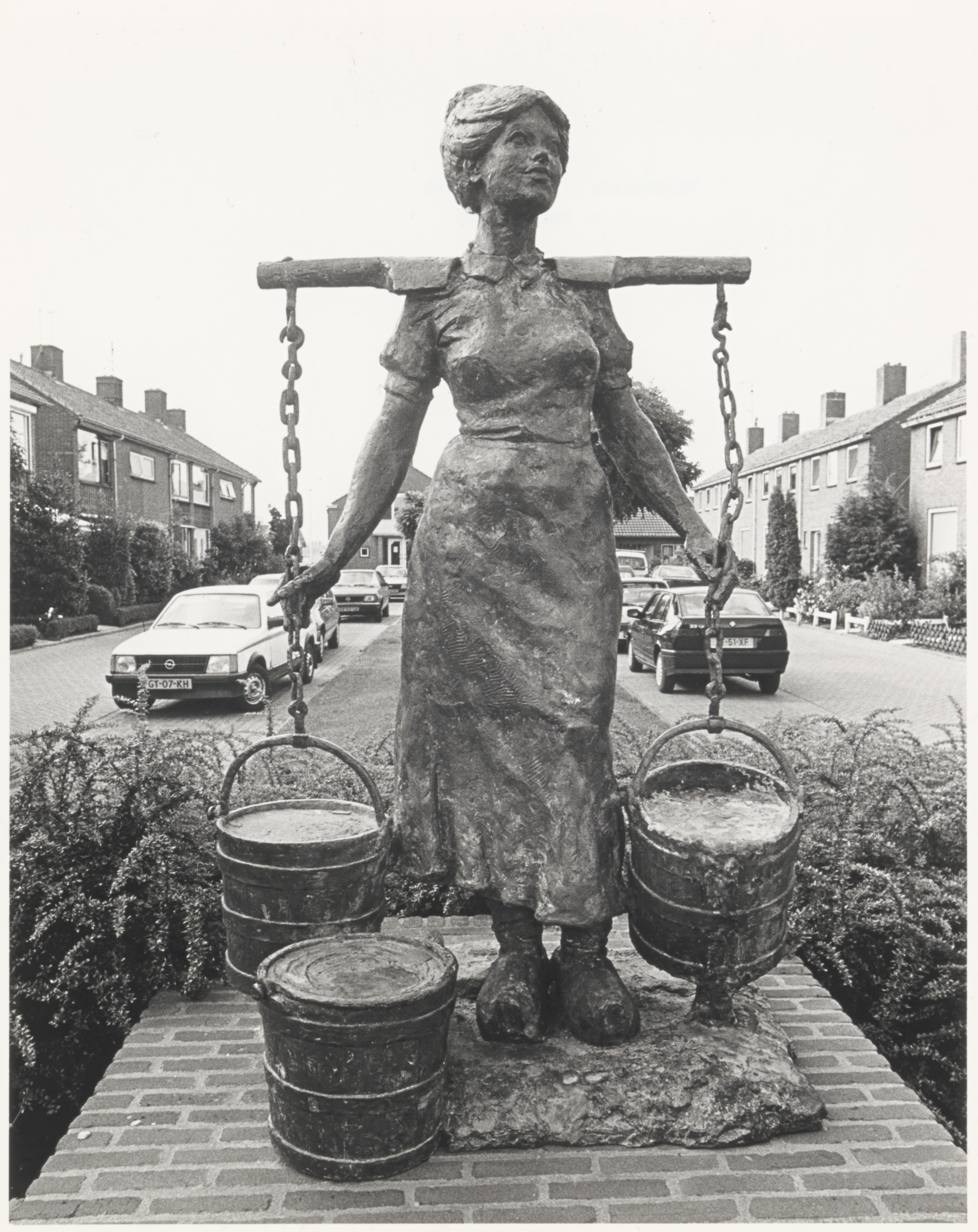 Het beeld "Melkmeisje" van Marcus Ravenswaaij in de Burgemeester Brouwerstraat in …