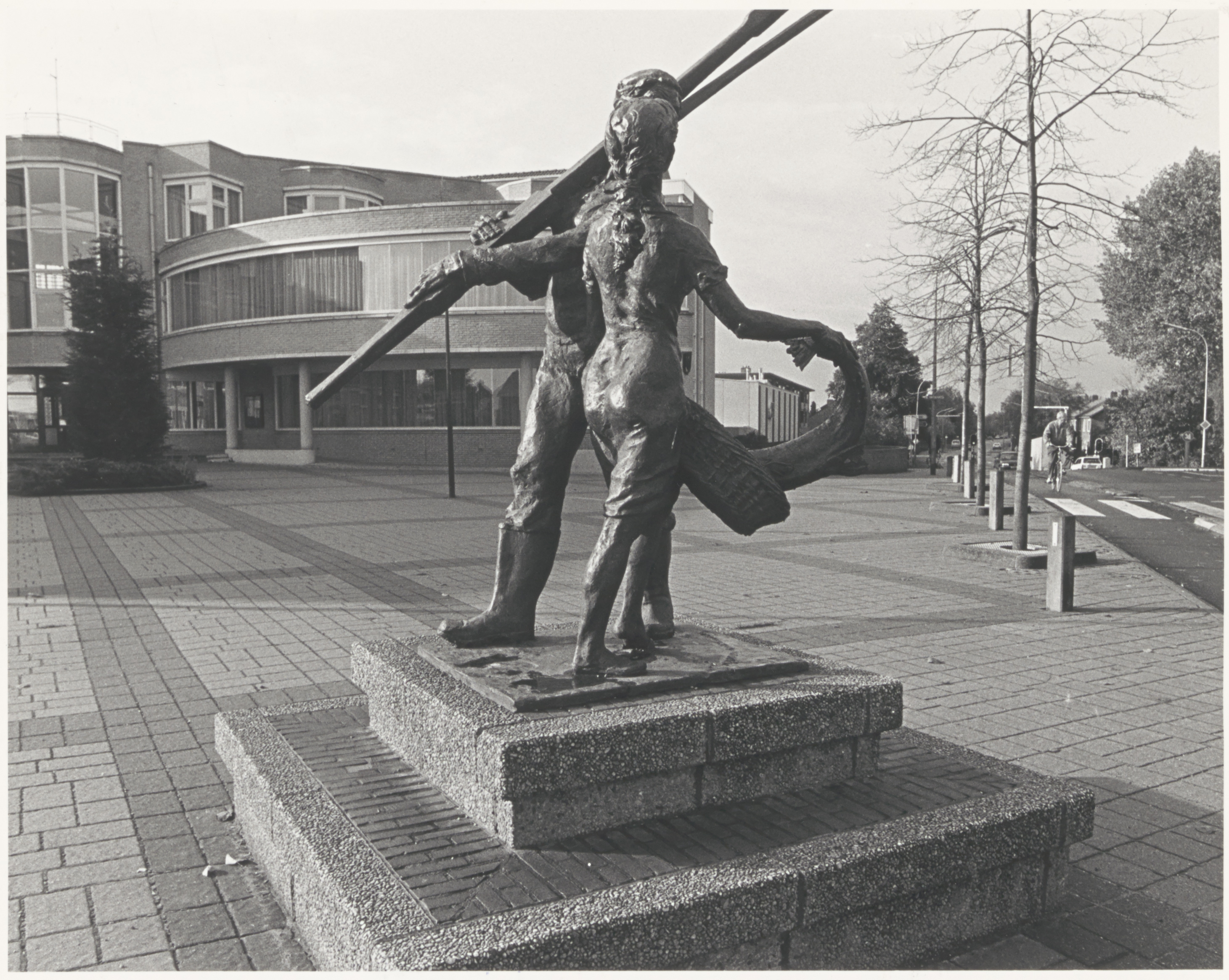 Standbeeld De Zalmvisser van Marcus Ravenswaaij bij het gemeentehuis op het …