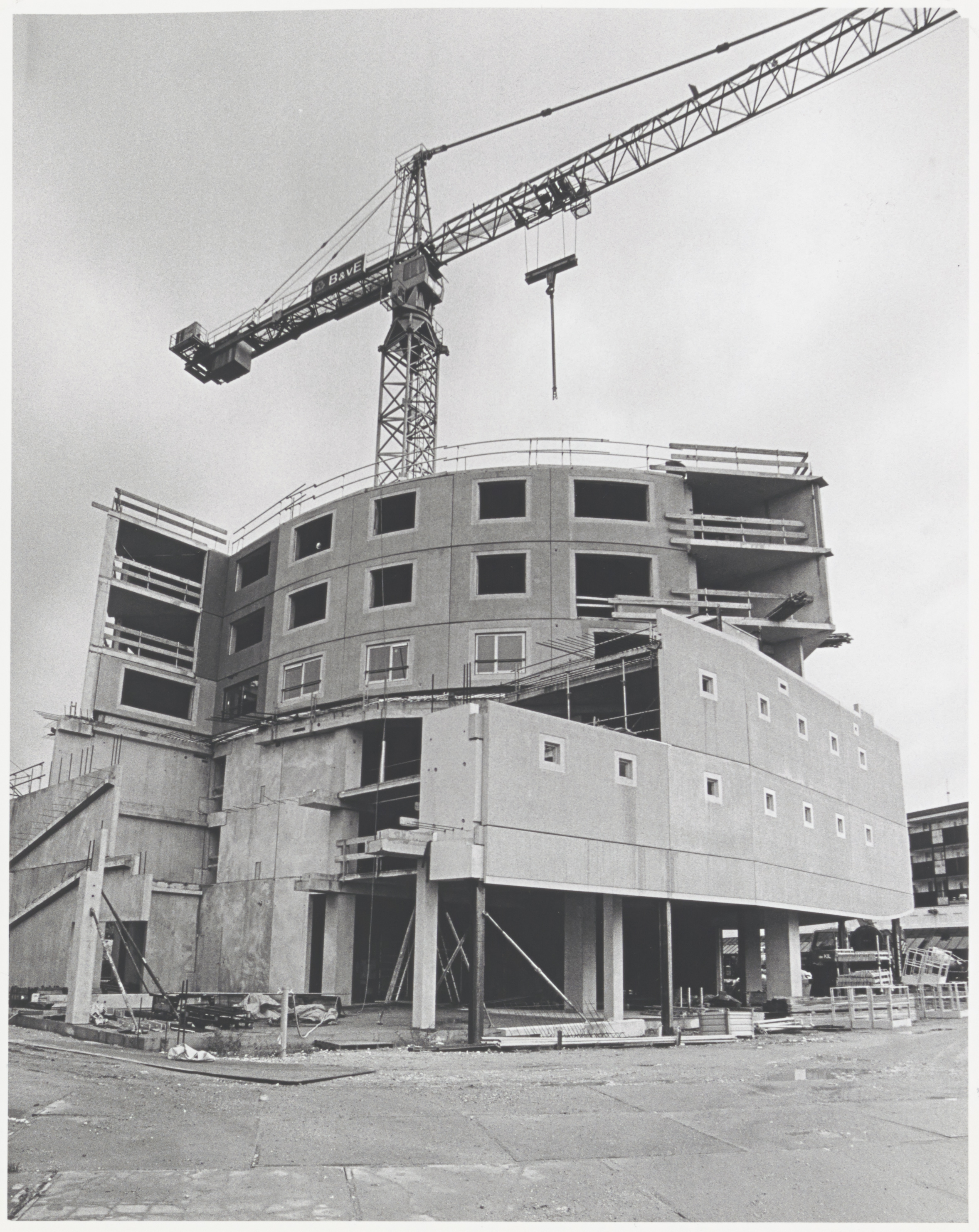 Bouw van torenflat Sequoia in de hoek Van Eesterenplein-Groenezoom-Loswalweg.