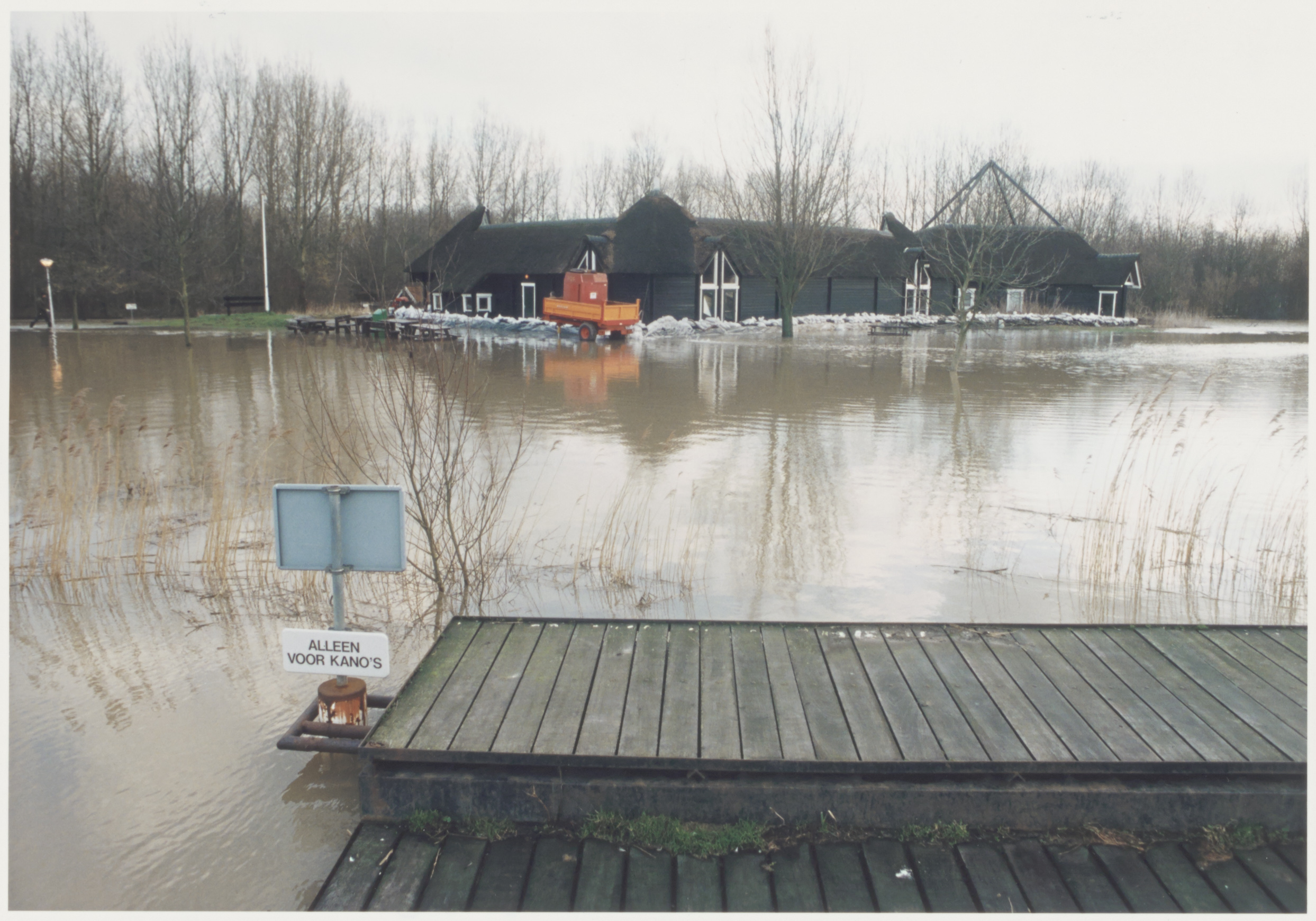 - Bezoekerscentrum De Hollandse Biesbosch in het recreatieschap de Merwelanden aan de Baanhoekweg tijdens hoogwater.