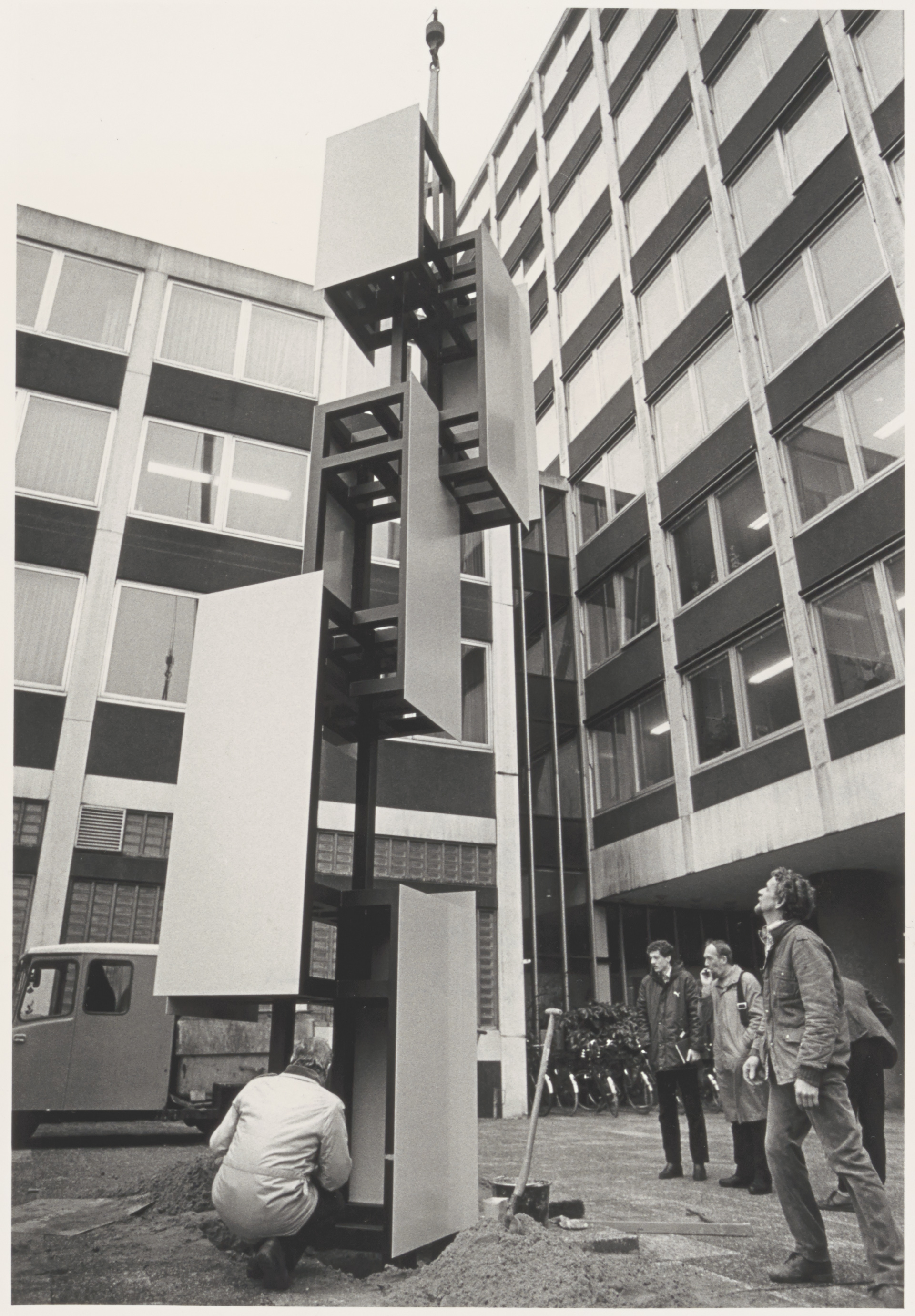 Plaatsing van een kunstwerk voor het Stadskantoor op de Spuiboulevard.