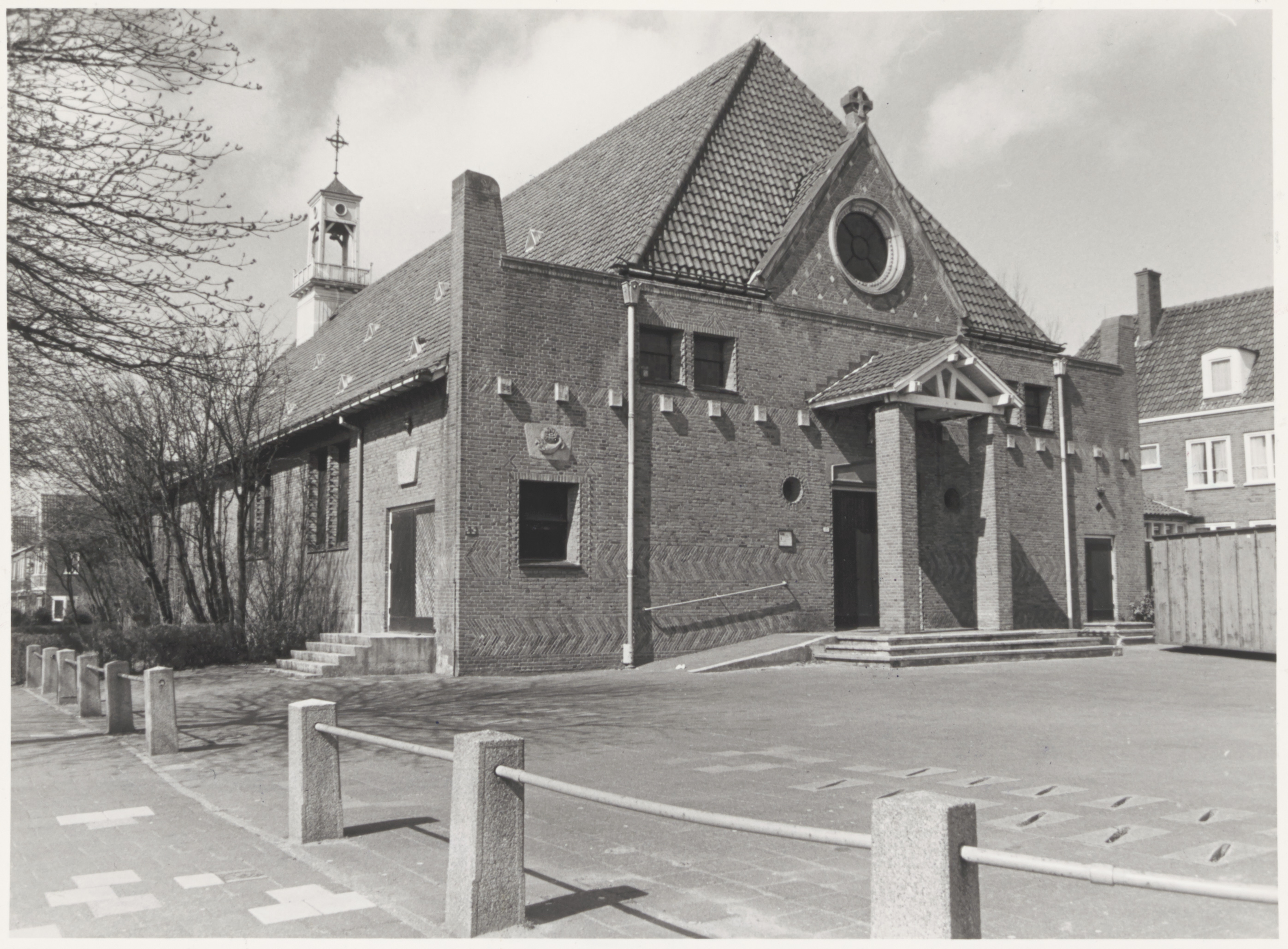 - Onze Lieve Vrouwekerk op de hoek van de Brouwersdijk en de Frans Lebretlaan (links).