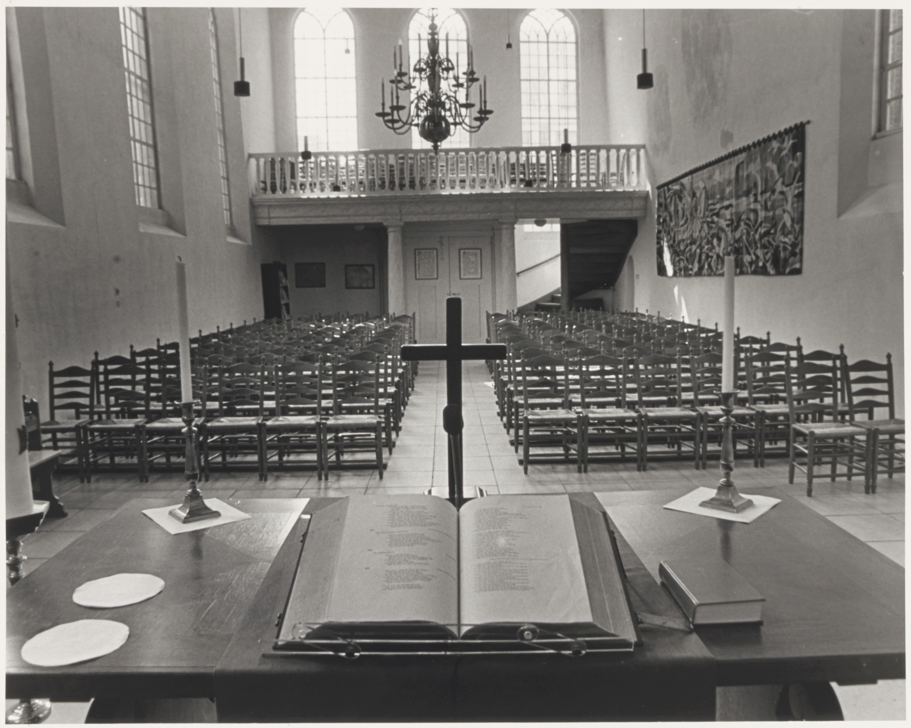 - Interieur Trinitatiskapel van de Lutherse Gemeente in de Vriesestraat op de hoek van de Blindeliedengasthuissteeg.