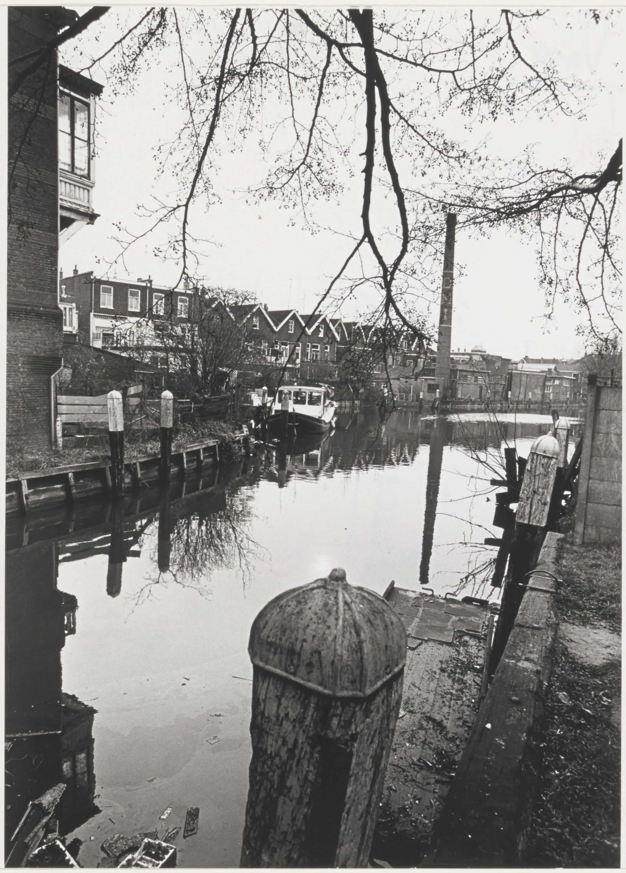 De Spuihaven langs het Kromhout, gezien vanaf de Noordersluisbrug. De schoorsteenpijp …