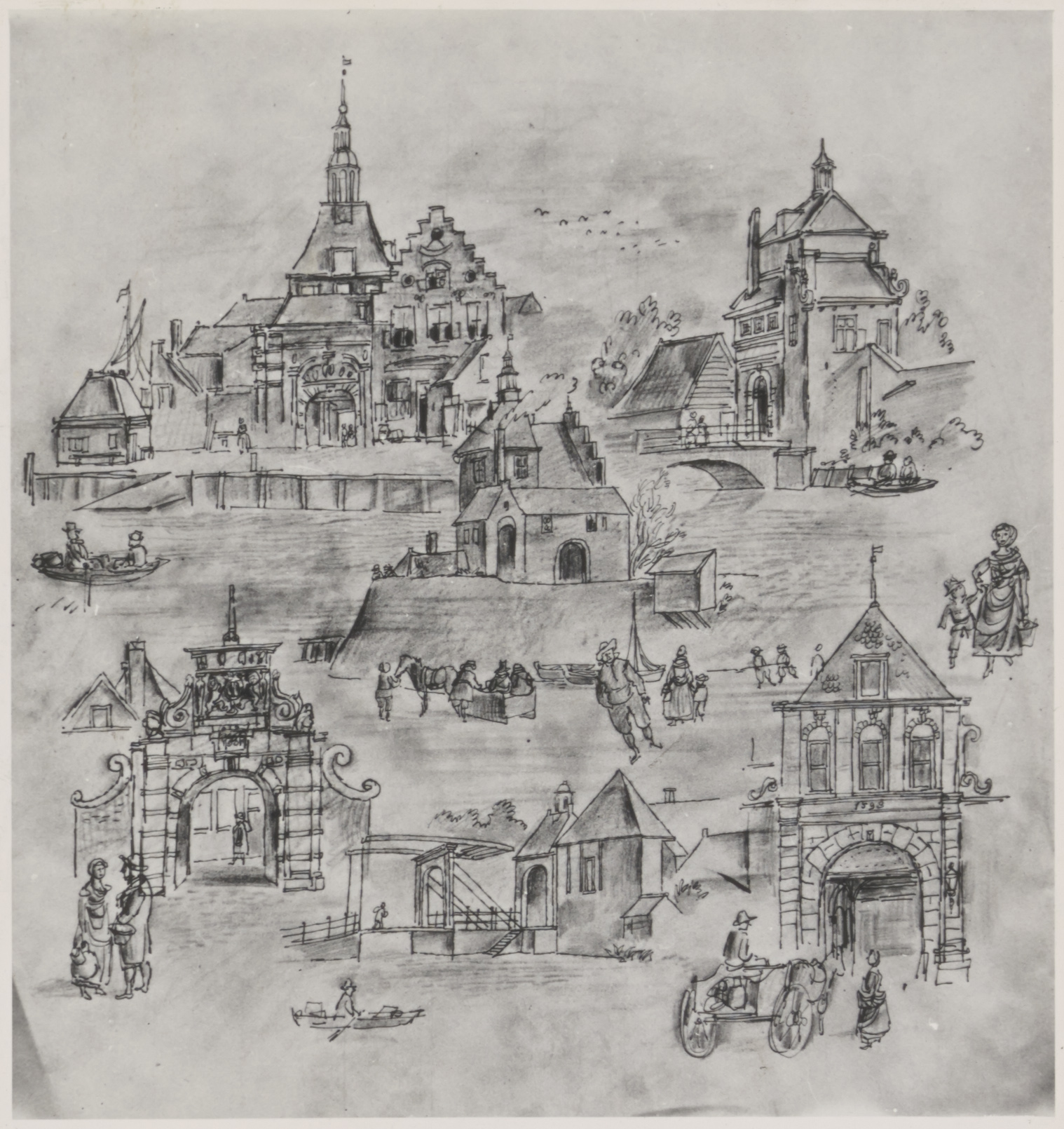 - Ontwerp van een wandschildering in het trappenhuis van het archiefgebouw aan het Stek, hoek Stekstraat.