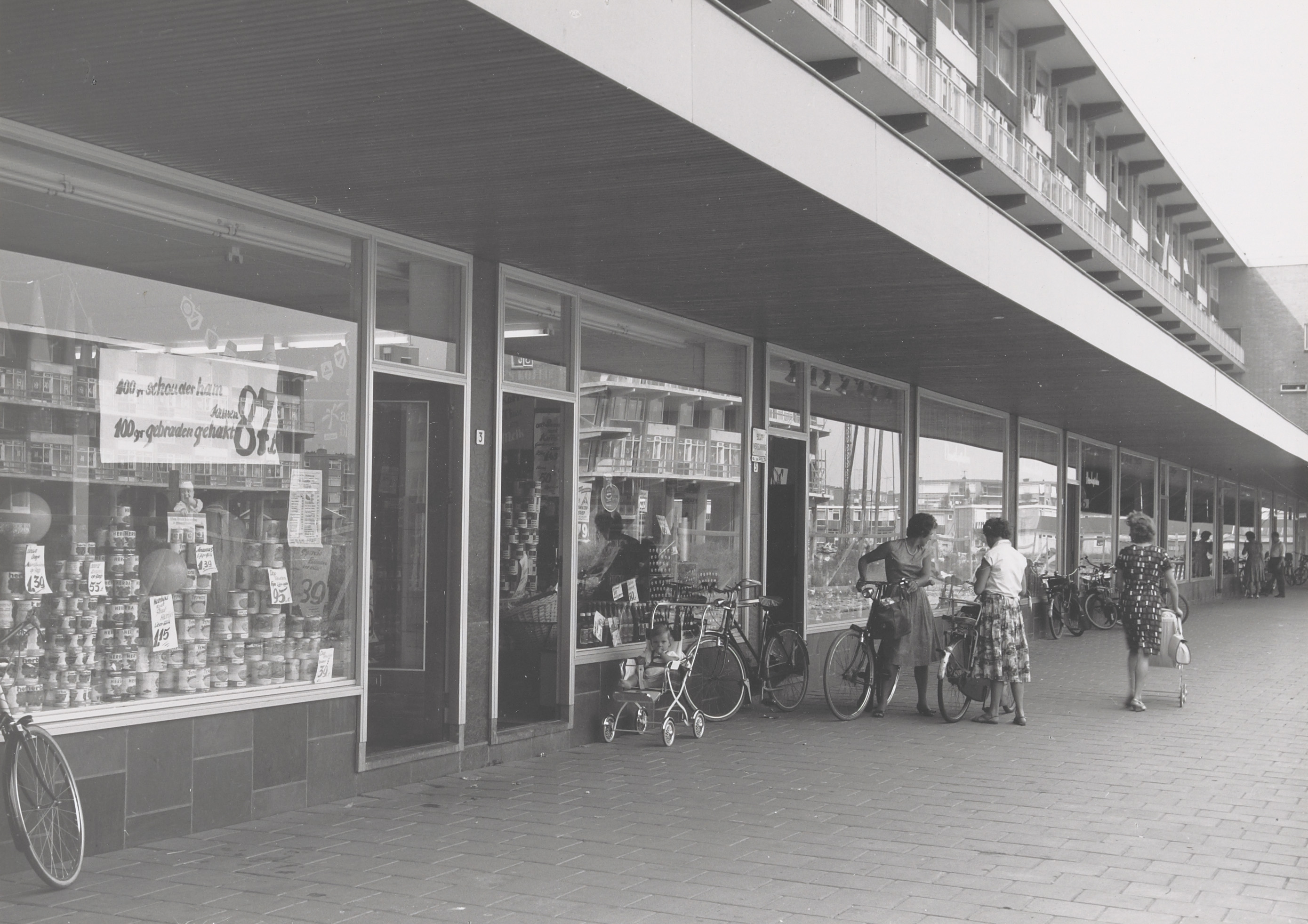 - fietsen / rijwielen kinderwagens winkelcentra winkelend publiek