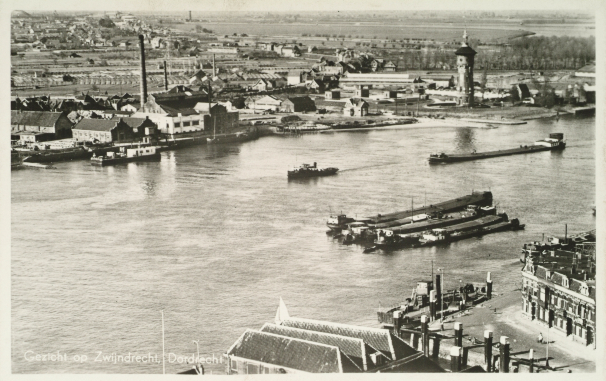 Vanaf de toren van de Grote Kerk zicht op de Oude Maas met Zwijndrecht op de achtergrond.