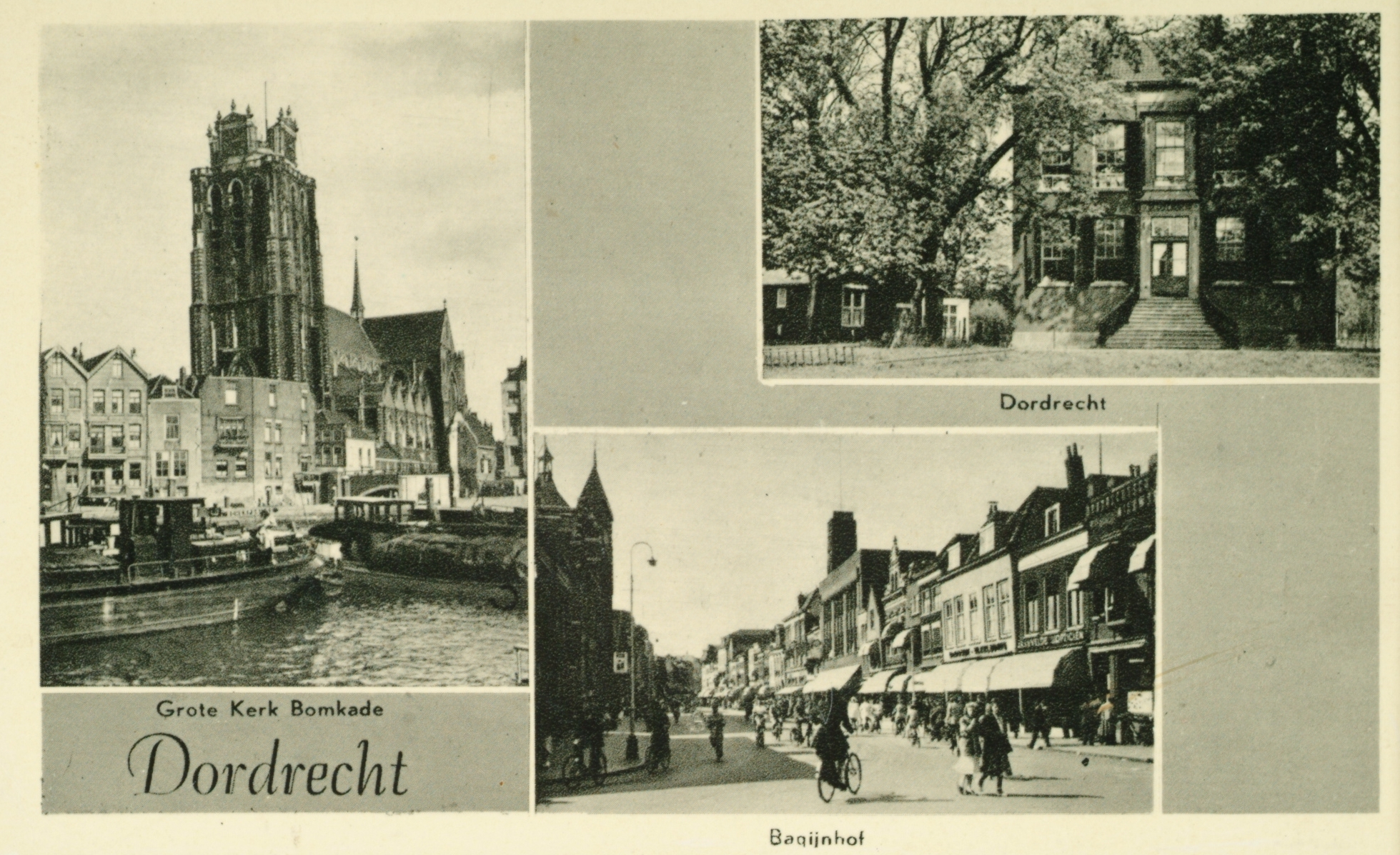 L-Grote kerk vanaf de Bomkade. RB-Villa Weizigt. RO-Bagijnhof.