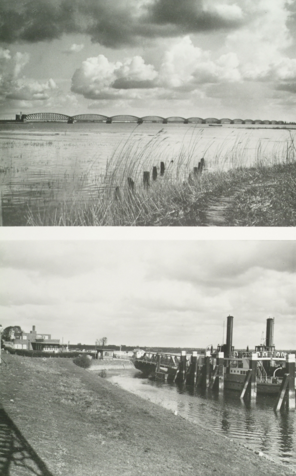 Onder: aanleg veerboot van Dordrecht-Moerdijk met links het Hotel Waterloo.