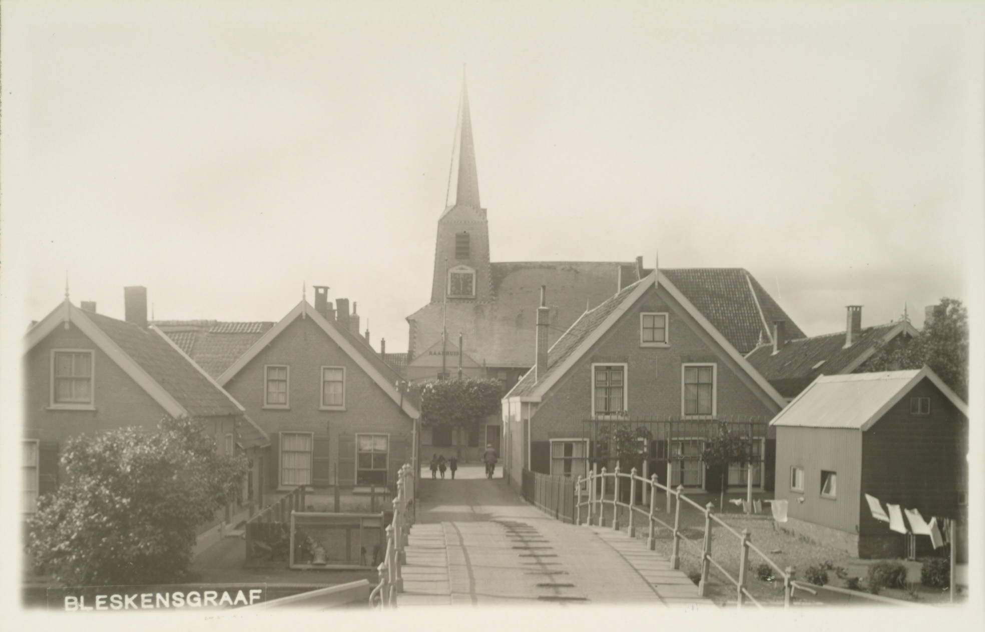- Brug over de Graafstroom, gezien richting de kerk van de Hervormde Gemeente in Bleskensgraaf