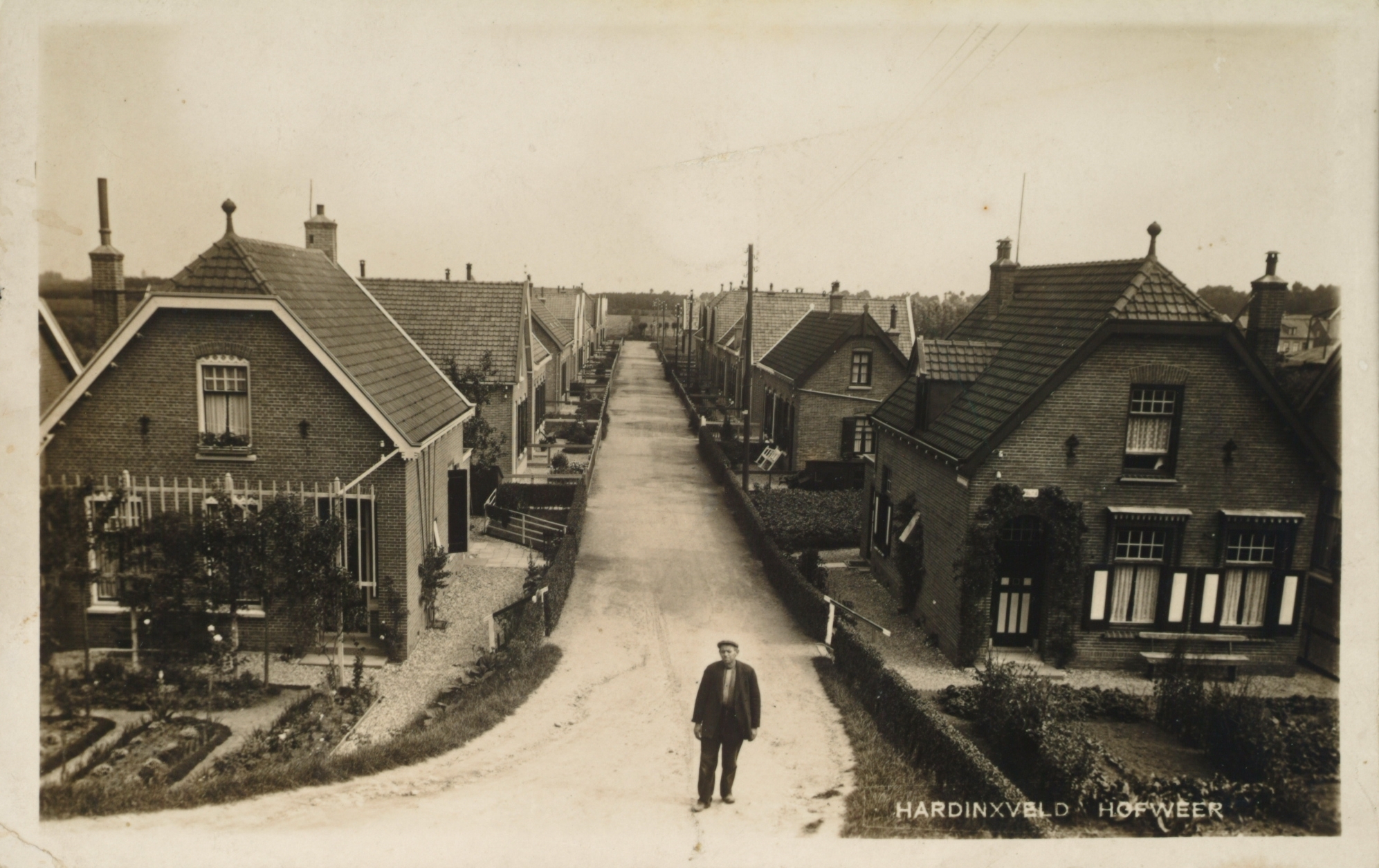 - De Hofweerstraat in Hardinxveld, gezien vanaf de Rivierdijk naar het noorden.