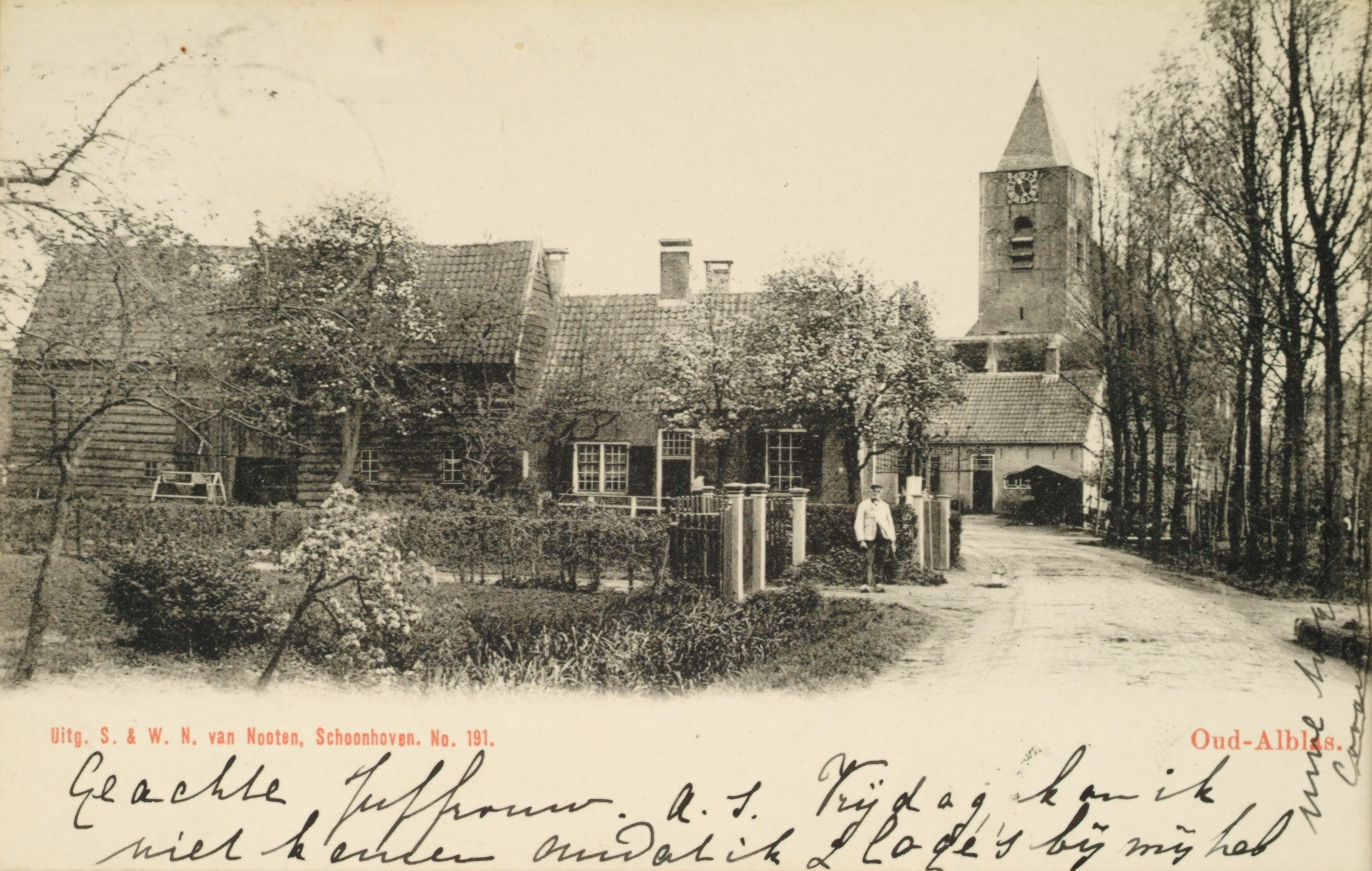 - De Dorpsstraat richting de Hervormde Kerk in Oud-Alblas.
