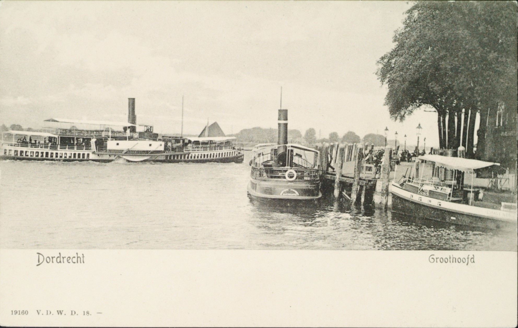 - Gezicht op de Oude Maas vanaf het Groothoofd., met een raderboot de Pres. Steijn omstreeks 1905.