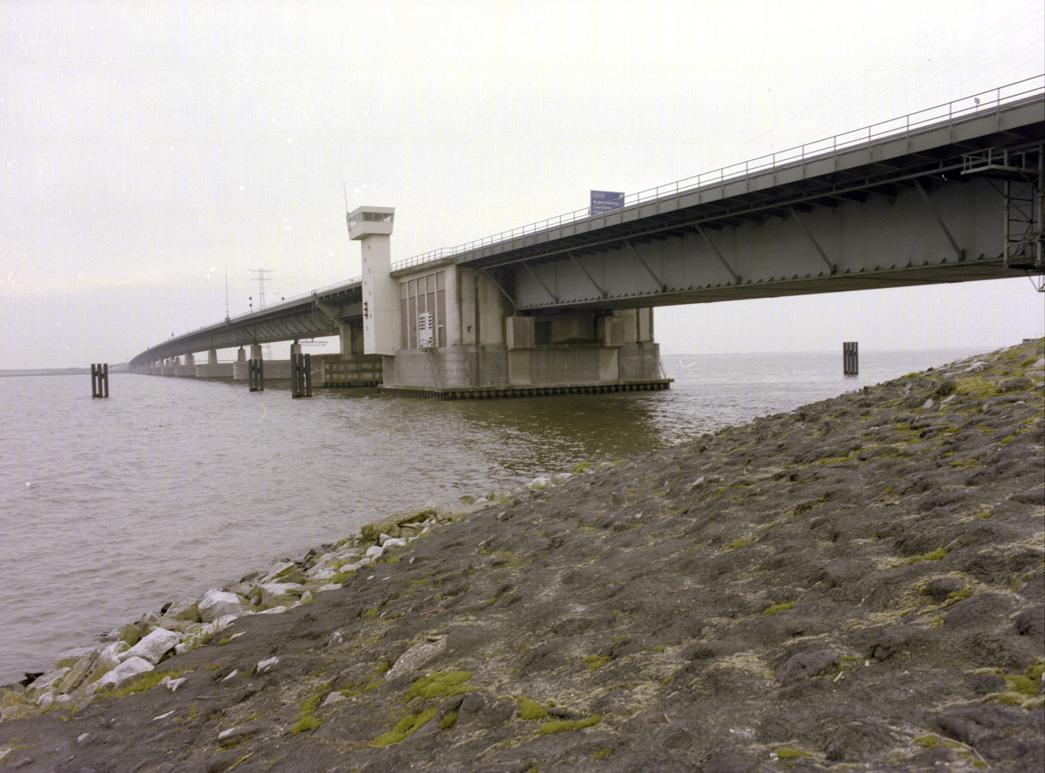 Haringvlietbrug, gezien vanaf Numansdorp's zijde in zuidwestelijke richting.